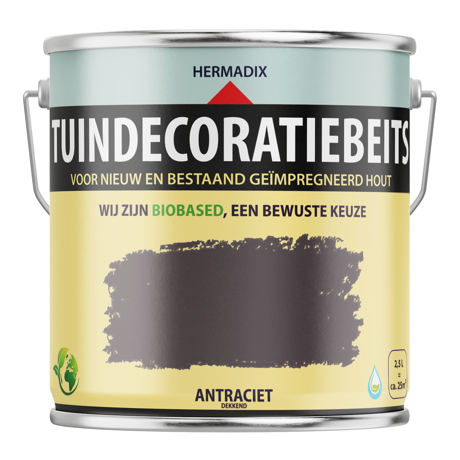 Hermadix Tuindecoratiebeits is speciaal ontwikkeld voor nieuw en oud geïmpregneerd tuinhout zoals: schuttingen, speeltoestellen, borders, pergola, vlonders en geïmpregneerde blokhutten. Nieuw geïmpregneerd tuinhout heeft een fabrieksmatige behandeling ondergaan. De speciale samenstelling van Tuindecoratiebeits is naadloos afgestemd op deze behandeling. Hierdoor kunt u uw tuinhout makkelijke en snel beitsen. Bij onderhoudslagen hoeft niet geschuurd te worden. Bruin naturel is een transparante kleur en geeft een natuurlijke uitstraling waarbij de houtnerf zichtbaar blijft. Tuindecoratiebeits is makkelijk te verwerken en geeft een jarenlange bescherming en sfeervolle uitstraling. Een Environment o.k. product, dus mens- en milieuvriendelijk.