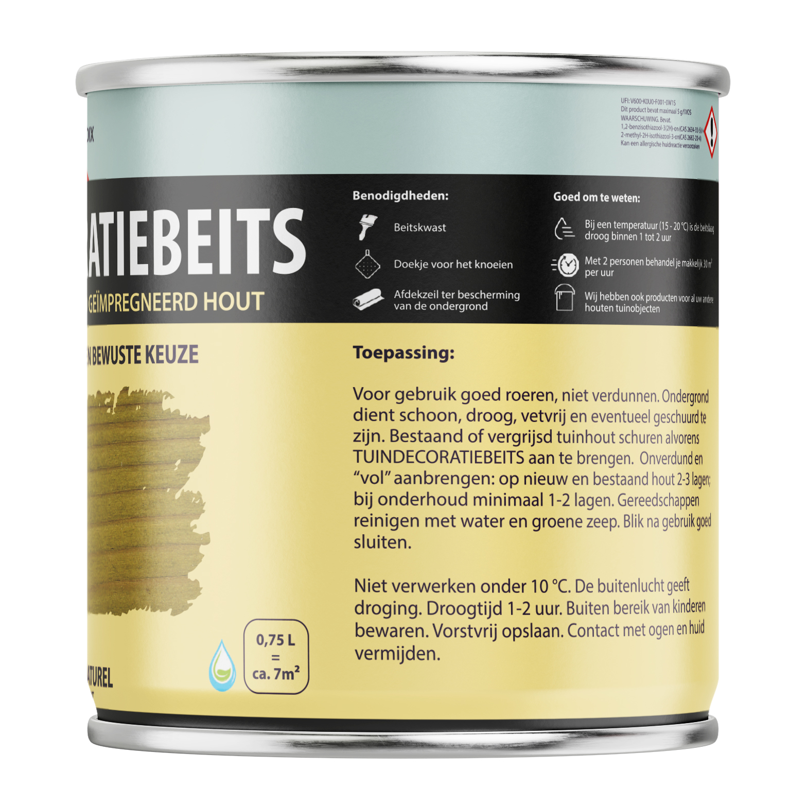 Hermadix Tuindecoratiebeits is speciaal ontwikkeld voor nieuw en oud geïmpregneerd tuinhout zoals: schuttingen, speeltoestellen, borders, pergola, vlonders en geïmpregneerde blokhutten. Nieuw geïmpregneerd tuinhout heeft een fabrieksmatige behandeling ondergaan. De speciale samenstelling van Tuindecoratiebeits is naadloos afgestemd op deze behandeling. Hierdoor kunt u uw tuinhout makkelijke en snel beitsen. Bij onderhoudslagen hoeft niet geschuurd te worden. Groen naturel is een transparante kleur en geeft een natuurlijke uitstraling waarbij de houtnerf zichtbaar blijft. Tuindecoratiebeits is makkelijk te verwerken en geeft een jarenlange bescherming en sfeervolle uitstraling. Een Environment o.k. product, dus mens- en milieuvriendelijk.