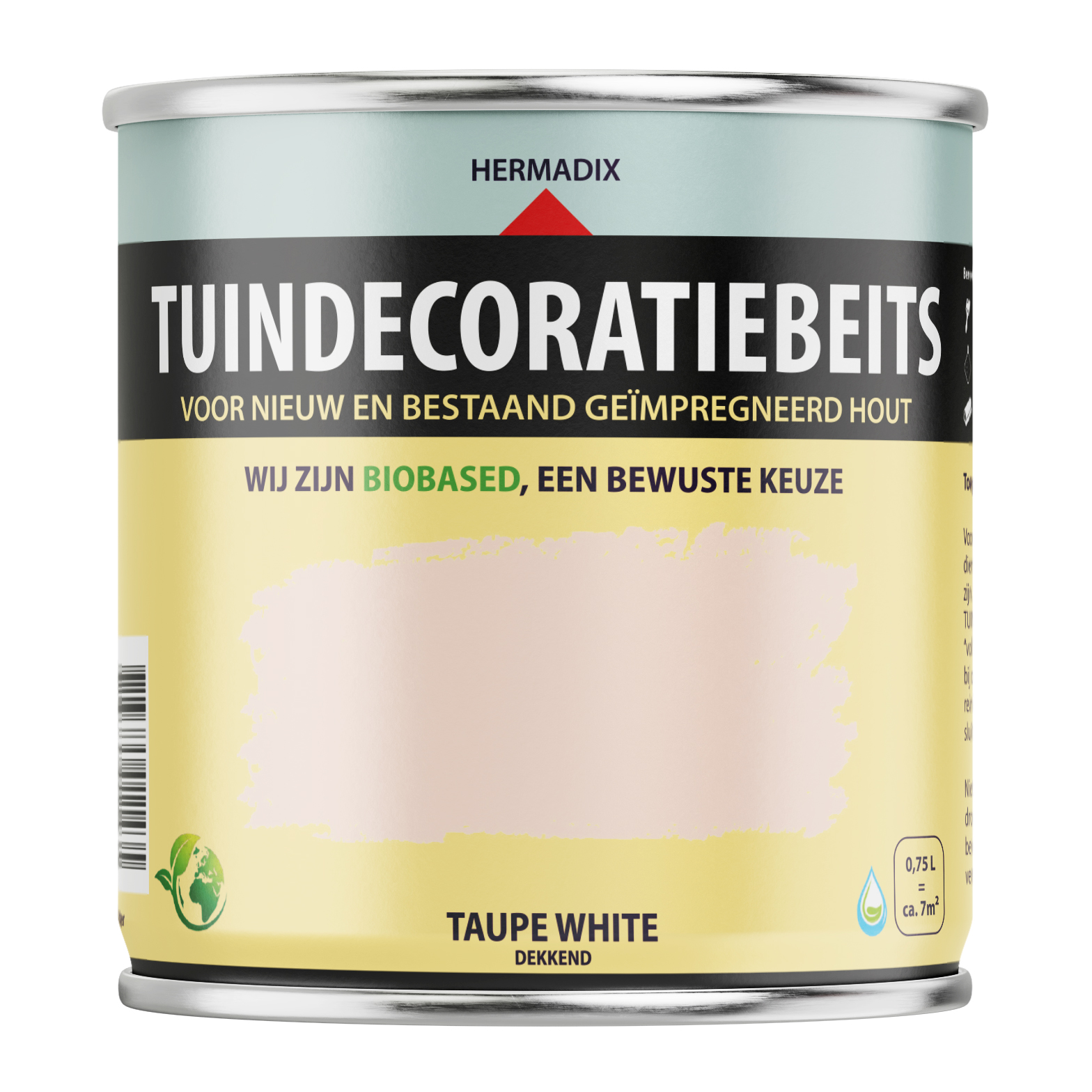 Hermadix Tuindecoratiebeits is speciaal ontwikkeld voor nieuw en oud geïmpregneerd tuinhout, zoals: schuttingen, speeltoestellen, borders, pergola en geïmpregneerde blokhutten. Nieuw geïmpregneerd tuinhout heeft een fabrieksmatige behandeling ondergaan. De speciale samenstelling van Tuindecoratiebeits is naadloos afgestemd op deze behandeling. Hierdoor kunt u uw tuinhout makkelijke en snel beitsen. Bij onderhoudslagen hoeft niet geschuurd te worden. Taupe white is matglanzende een dekkende kleur en geeft een jarenlange bescherming en sfeervolle uitstraling. Tuindecoratiebeits is makkelijk te verwerken en sneldrogend. Een Environment o.k. product, dus mens- en milieuvriendelijk. (ook geschikt voor steigerhout)