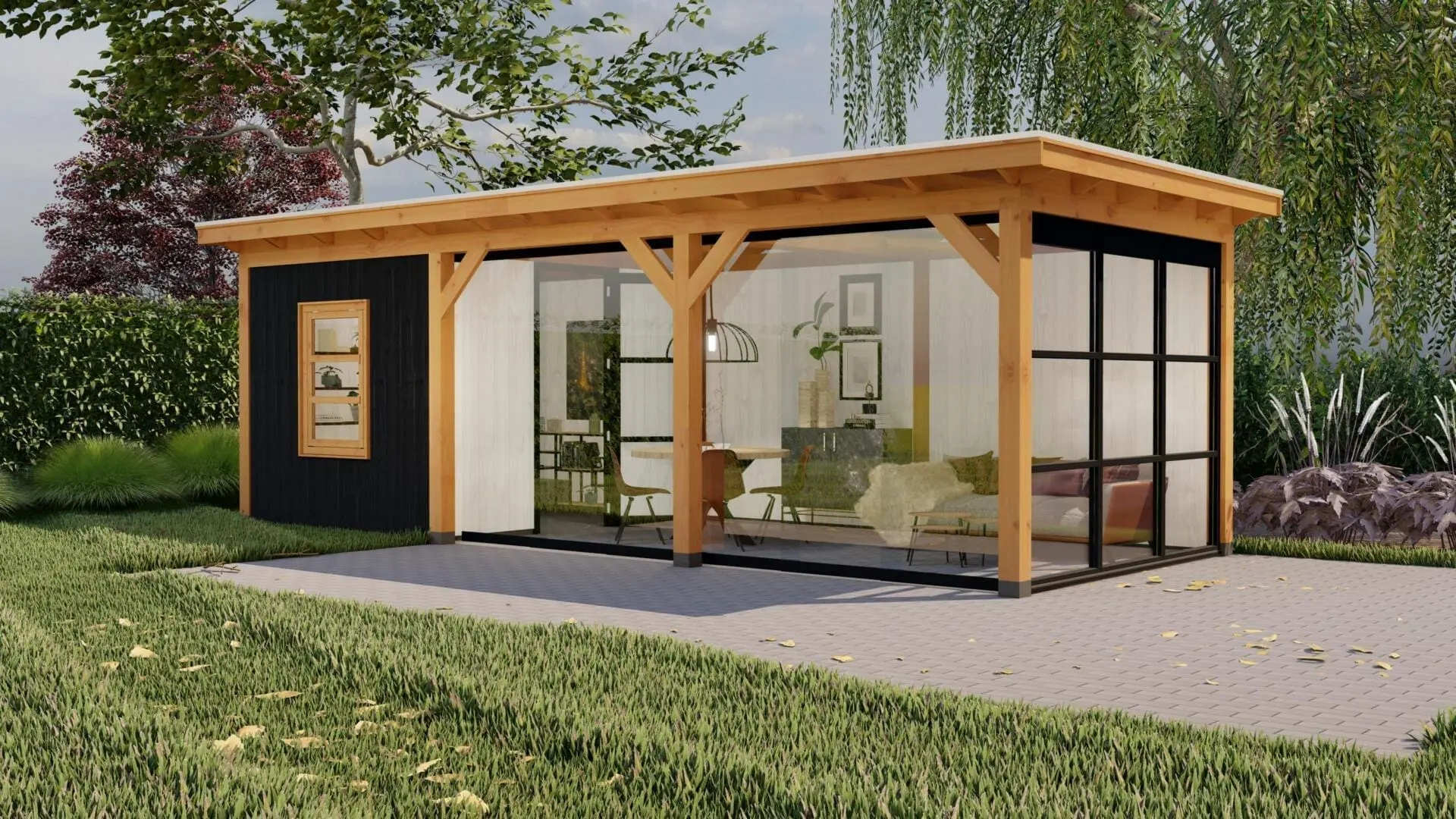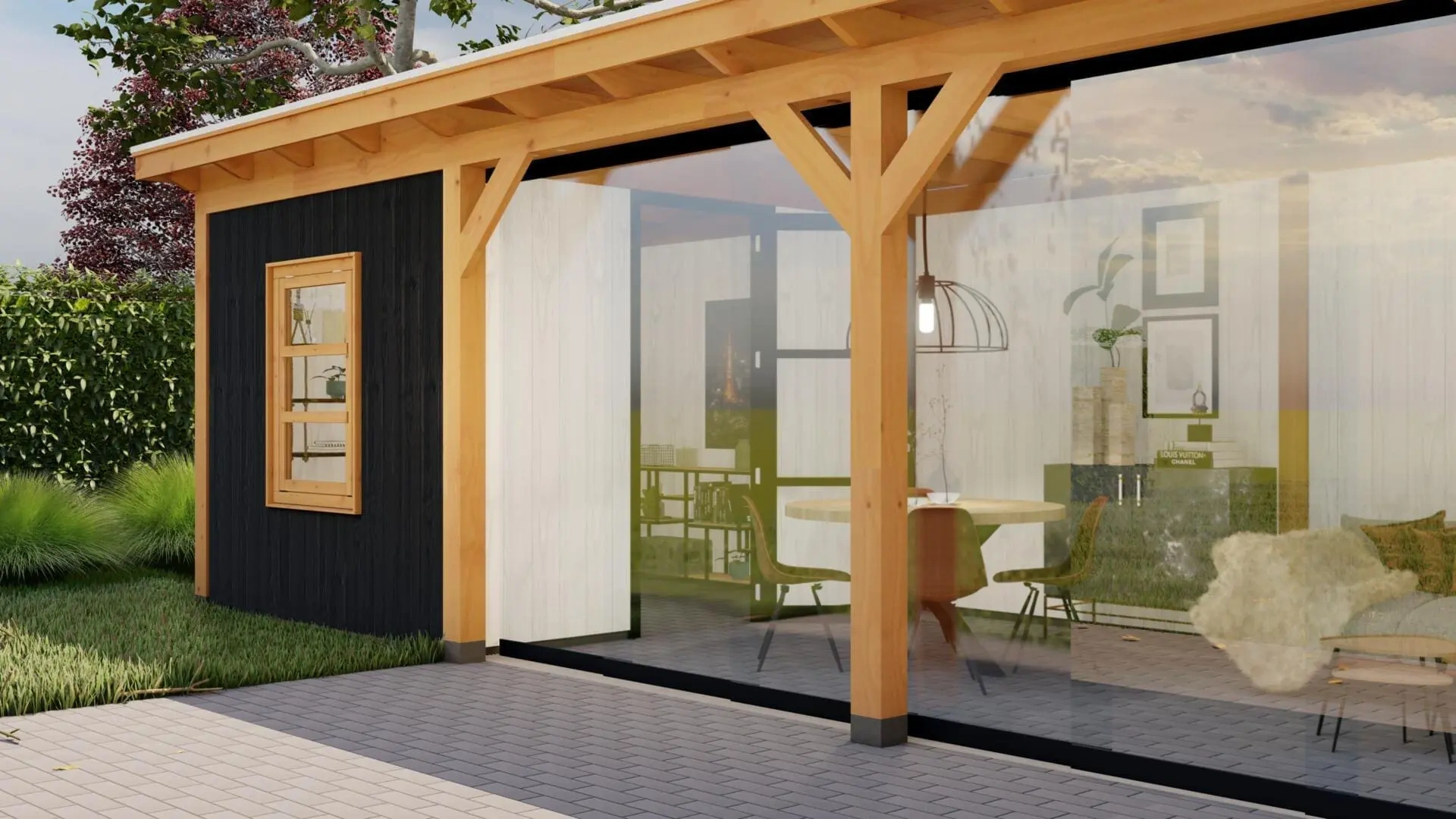 Deze variant van het buitenverblijf Parijs L is uitgevoerd als sfeervolle tuinkamer.