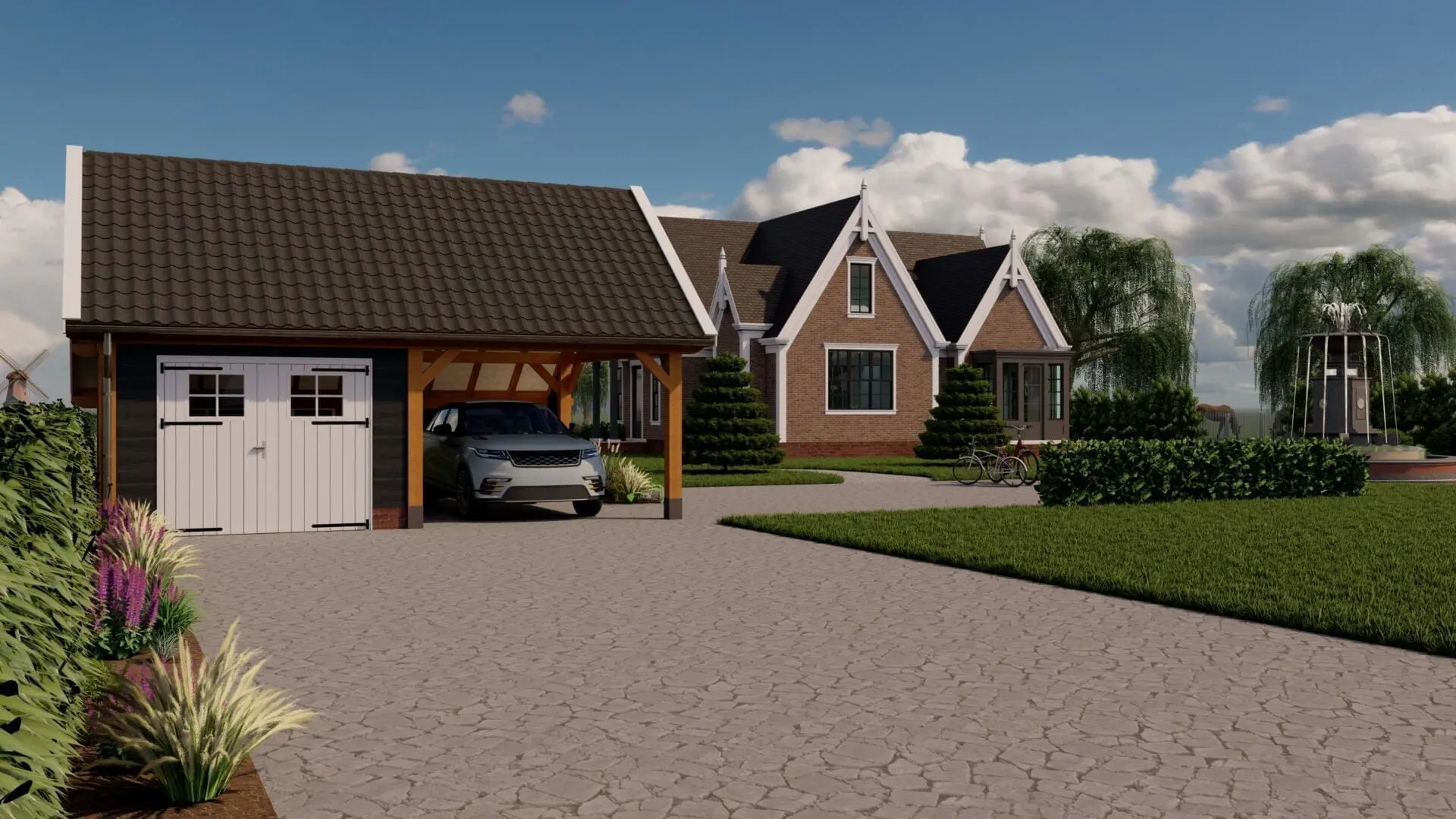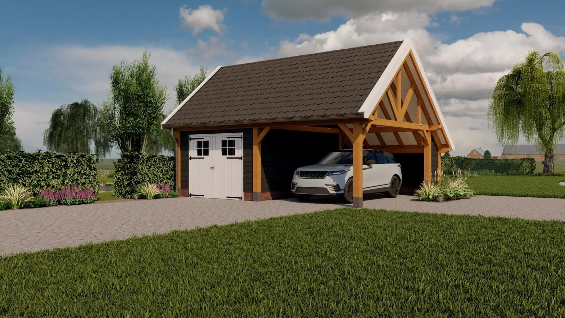 In dit model is gekozen voor twee ruimtes. De berging is voorzien van een grote witte opgeklampte deur uit onze basic collectie.