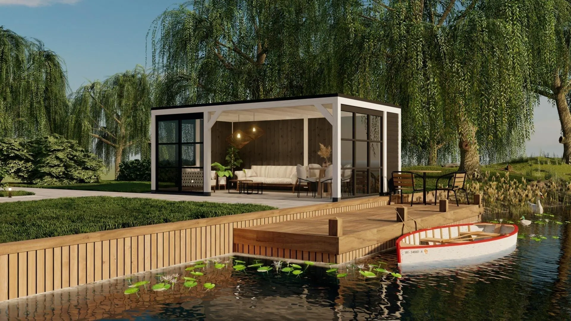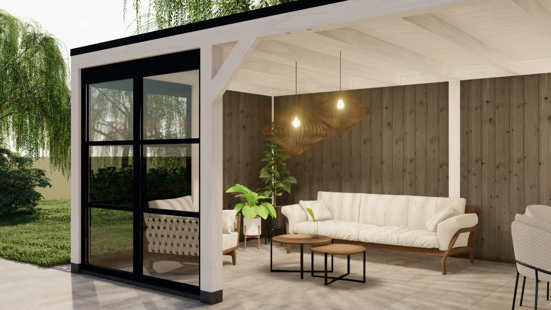 Deze variant van het buitenverblijf Valencia is uitgevoerd in het wit en is voorzien