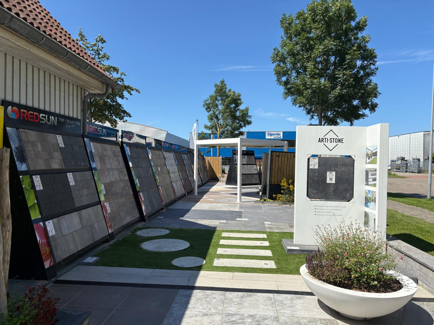 Op ons terrein aan de Witte Paal vind je een uitgebreide showtuin met veel voorbeelden van tuinmaterialen. Van moderne en strakke keramische tegels tot klassieke sferen met gebakken klinkers en betonsteen.