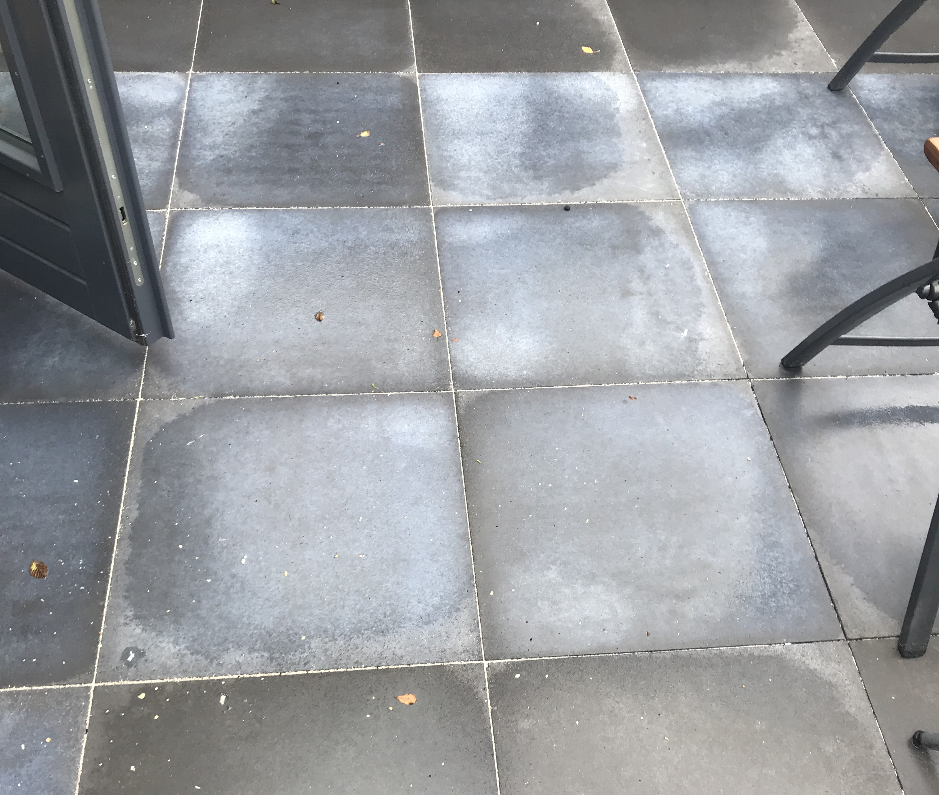 Behandelen met WS kalkuitbloeiverwijderaar kan kalkuitslag verwijderen. Test altijd eerst op een klein stuk voordat je het gehele oppervlak behandeld.