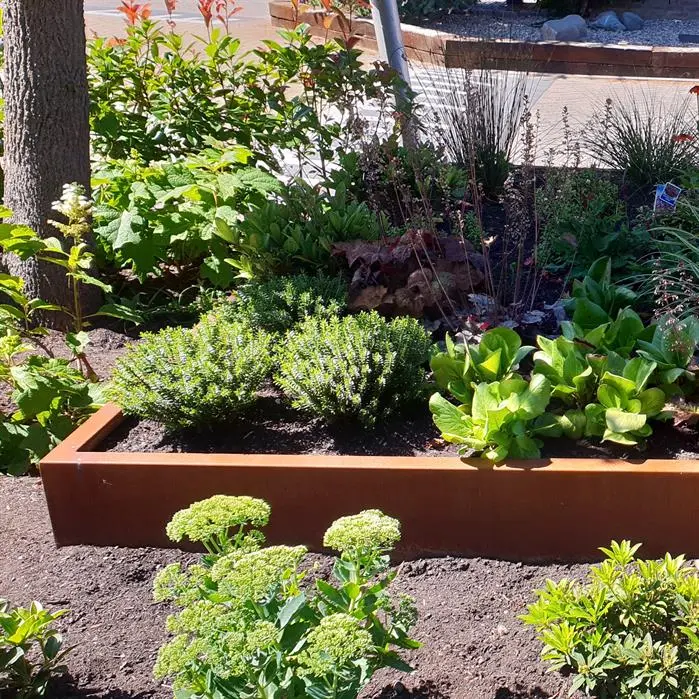 De krachtige en warme uitstraling van de keerwand komt mede door de oranjebruine kleur van het materiaal. Deze kleur vormt zich door een natuurlijke roestlaag. Een andere naam voor cortenstaal is weervast staal: weersomstandigheden hebben namelijk positieve invloed op deze plantenbak.