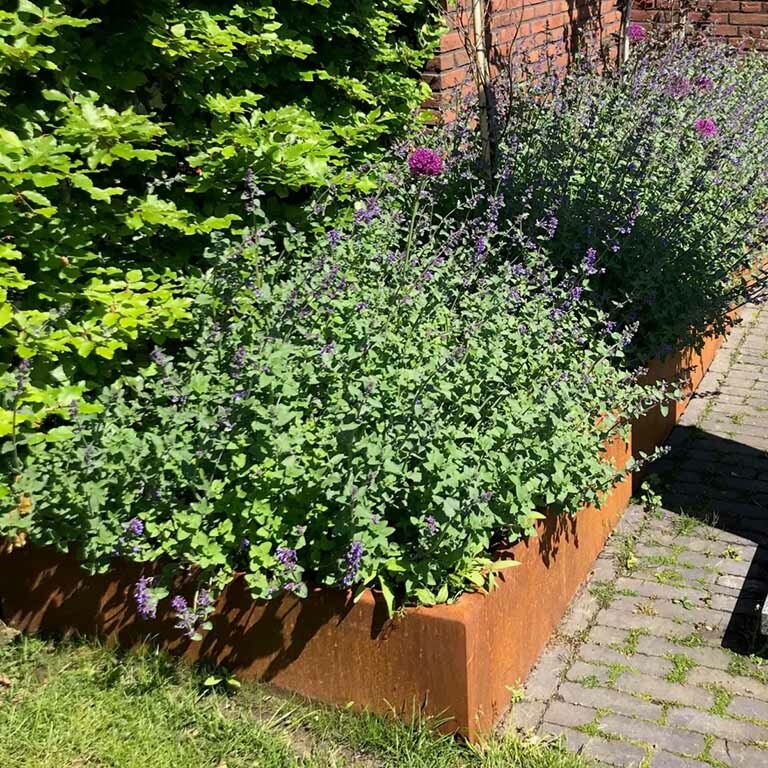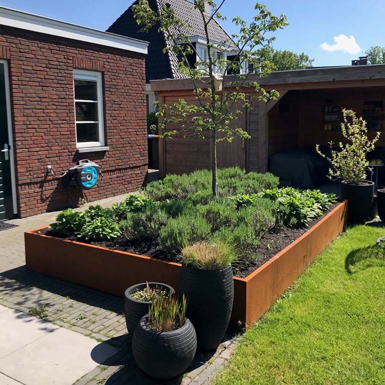 De keerwand wordt vervaardigd uit hoogwaardig Corten-A staalplaat. Deze metaalsoort heeft als unieke eigenschap dat het een zeer dichte oxidehuid (roestlaag) vormt. Doorroesten is hierdoor onmogelijk. Door de dichte oxidehuid wordt het dieperliggende materiaal afgeschermd van zuurstof. Hierdoor wordt de oxidatie sterkt vertraagd terwijl de corrosie zich wel voortzet. De kantopsluiting wordt ongeroest, in de grijze metaalkleur geleverd. De bruin/oranje roestlaag vormt zich binnen enkele weken tot maanden. Hier is geen behandeling voor nodig. Tijdens het roestproces kan de kantopsluiting afgeven. Cortenstaal is een metaallegering die bestaat uit ijzer en hieraan zijn koper, fosfor, silicium, nikkel en chroom toegevoegd.