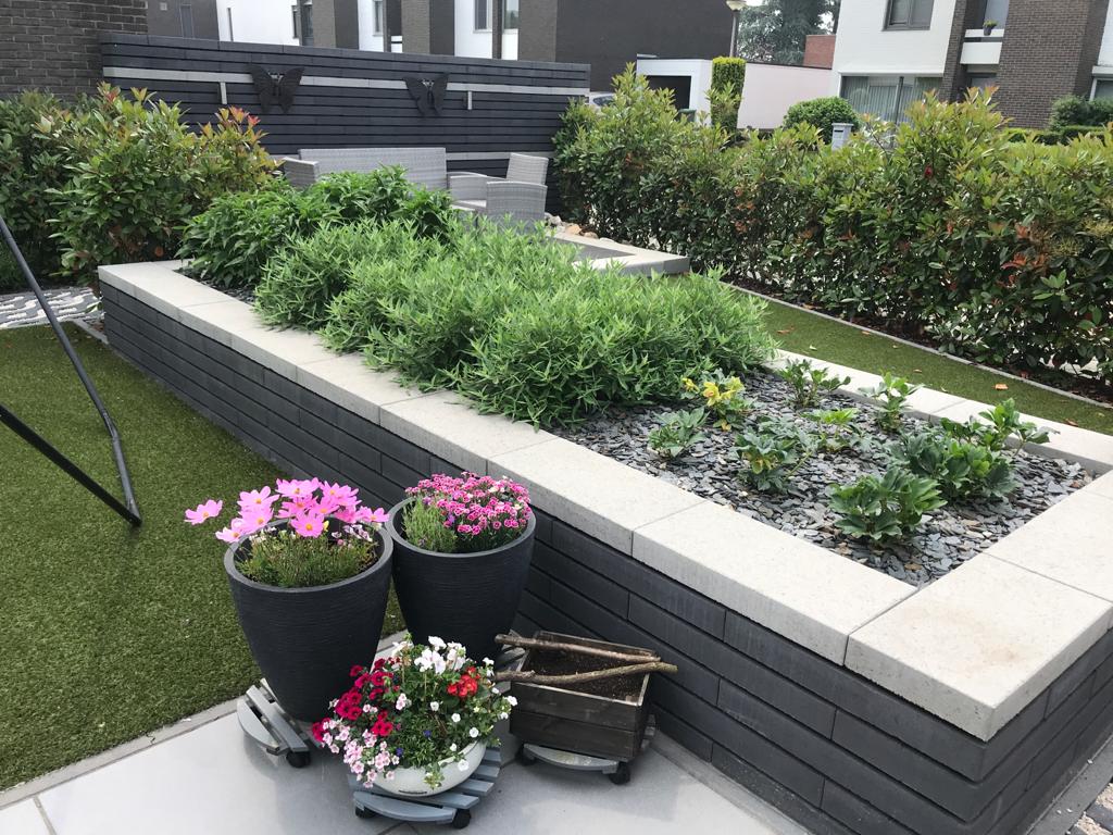 Voor een nette afwerking gebruik je de bijpassende afdekstenen van 30x60x7,5 cm of 15x60x7,5 cm. De kleuren Black en Grey zorgen voor een moderne, ingetogen basis die past in elke tuinstijl.