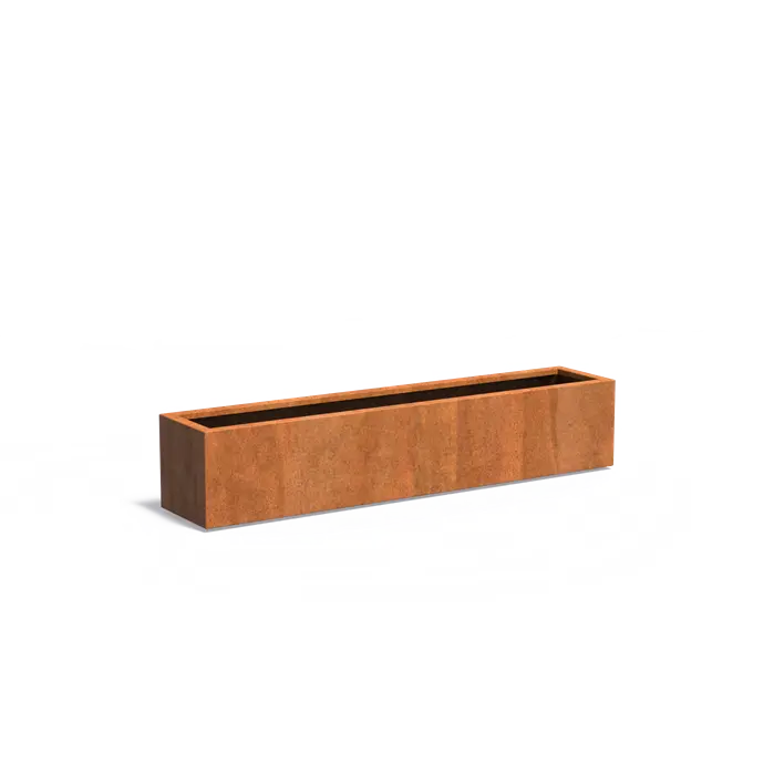 Cortenstaal is een metaallegering bestaande uit ijzer, waaraan koper, fosfor, silicium, nikkel en chroom zijn toegevoegd. Bij blootstelling aan de buitenlucht wordt het materiaal bedekt met een beschermende roestlaag. Deze natuurlijke roestlaag vormt de bescherming tegen verdere corrosie. Hierdoor heeft de plantenbak een lange levensduur.