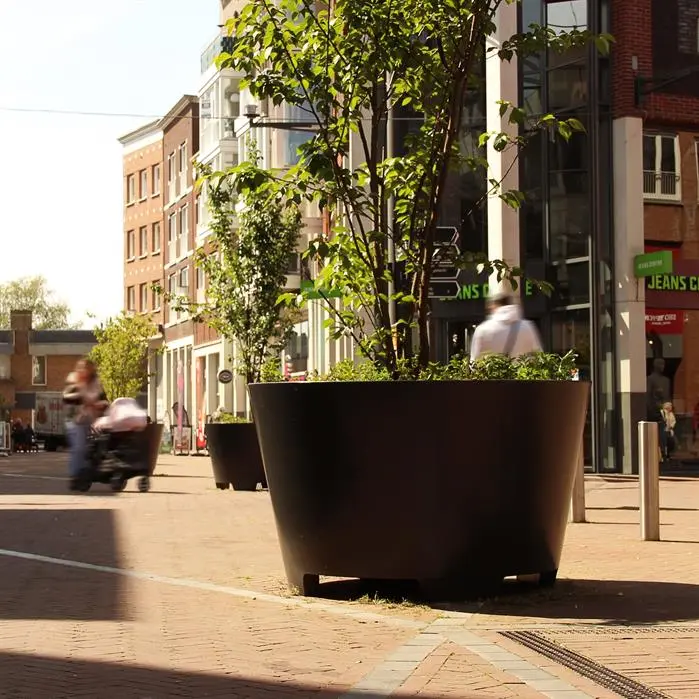 Deze conisch plantenbak zorgt voor een sierlijke uitstraling. De CONIC, die bekend staat om zijn grote afmetingen, is zeer geschikt om in openbare ruimtes of parktuinen te plaatsen.