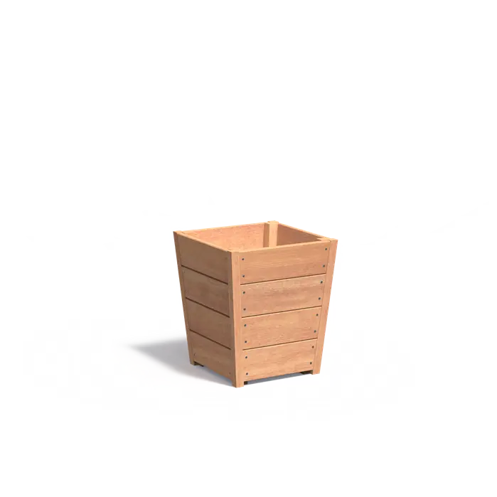De vierkant tapse vorm van de TAP zorgt voor een chique uitstraling. Dit houten exemplaar sluit uitstekend aan op projecten met vierkante plantenbakken.