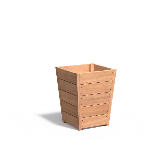 De vierkant tapse vorm van de TAP zorgt voor een chique uitstraling. Dit houten exemplaar sluit uitstekend aan op projecten met vierkante plantenbakken.