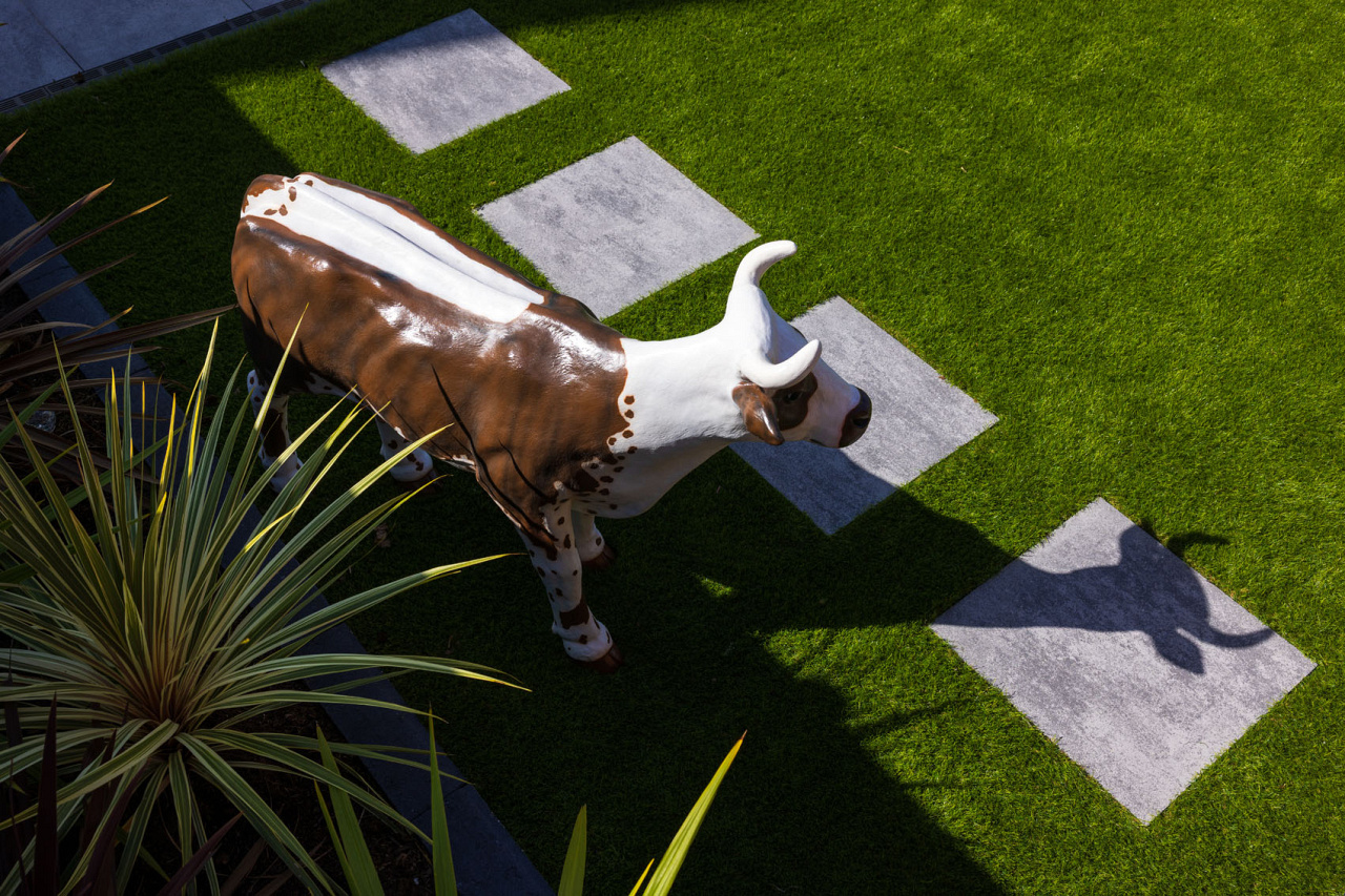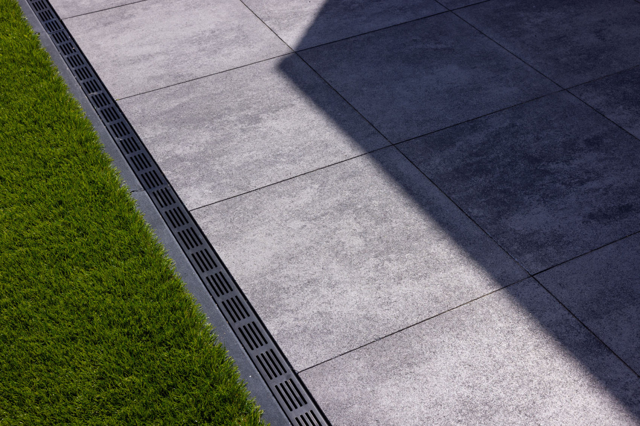 Het terras met natuurlijke uitstraling is gemaakt met de Viaterraza terrastegels, afkomstig uit de Moderne Mondriaan fabriek van MBI. Deze collectie tegels voor tuin en terras hebben de mooiste kleurnuances dankzij de innovatieve Inuancia Techniek. Het strakke design en de uiterst verdichte toplaag garanderen langdurige pracht. Men kan genieten van de nieuwe beschermingsfactor 40 en een (kleurechte) GeoSteen® toplaag. Een groot deel van de tuin is voorzien van kunstgras. Dit sterke, onderhoudsarme kunstgras zorgt voor een frisgroene uitstraling, het hele jaar door. Ideaal voor gezinnen met kinderen, omdat het zacht en veilig is om op te spelen, en tegelijkertijd eenvoudig te onderhouden.