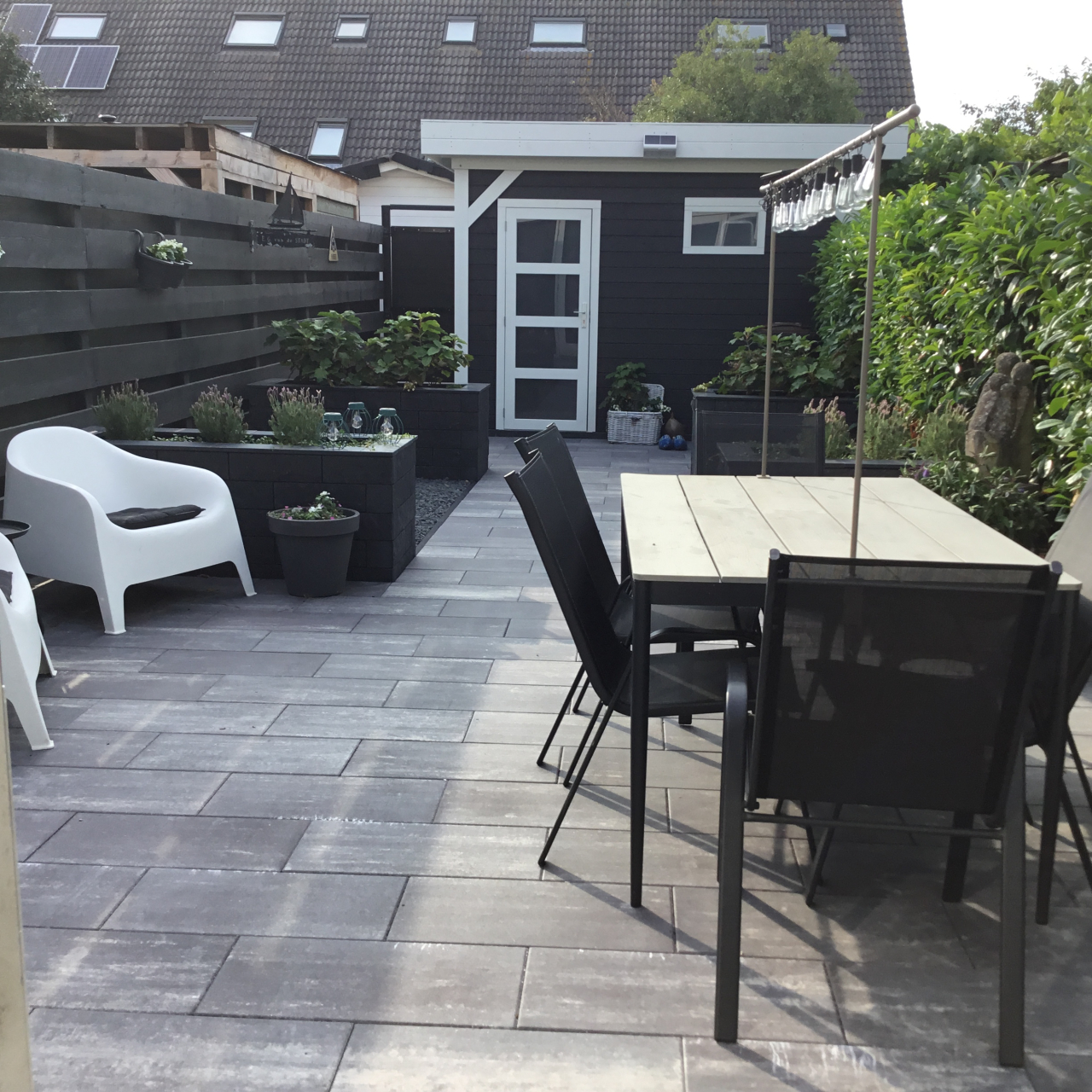 Schrijf een reviewGoede adviezen over weglaten opstapjes, o.a. afwatering, opbouw plantenbakken, echt prima tegelwerk en plaatsing schuur, na enkele opmerkingen over scheur in planken van de schuur daar ook goed advies over en afhandeling volgt nog tzt. Offerte en afrekening klopte prima, alles ondanks zeer warme weer mooi op tijd af. Aanrader voor als uw tuin gerenoveerd moet worden, wij genieten nu elke dag.