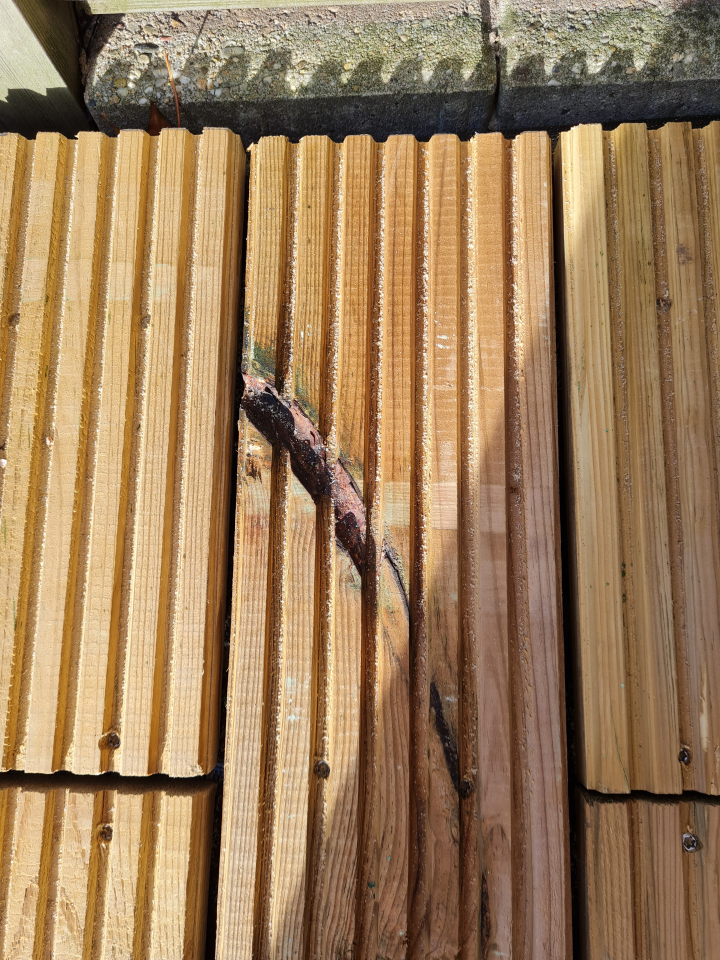 Helaas is er een foutje gemaakt bij het plaatsen van de hardhouten palen. Bij het verwijderen en zagen van de zwarte basaltblokken en de daarbij de verkregen zwarte handen, zijn de palen vol met zwarte plekken komen te staan. Ik heb geprobeerd met borstel en zeep, zelfs schoonmaak thinner gebruikt, maar het lijkt wel verf. Alleen schuren is de manier deze zwarte handen van de palen te krijgen, dus daar ben ik nog wel even mee bezig jammer genoeg. Het zou goed zijn de mannen er de volgende keer op te wijzen dat de palen schoon afgeleverd en geplaatst worden. Tot de volgende keer.