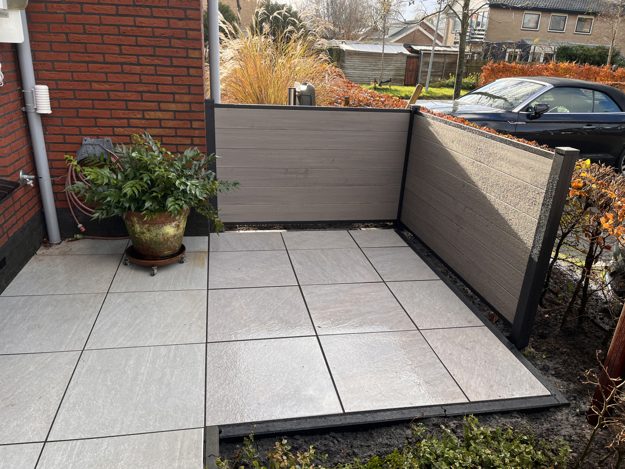 Hartelijk dank voor het uitgevoerde werk. Dit keer slechts een klein stukje extra terras en een schutting in de voortuin, nadat ze een paar jaar geleden al de hele voor- en achtertuin gedaan hadden. Complimenten aan Jeroen en Peter. Uitstekende vakmannen, harde werkers en bijzonder vriendelijk. Zorg wel dat je op tijd de koffie hebt klaar staan want Jeroen en Peter waren er al om 7.15 uur.