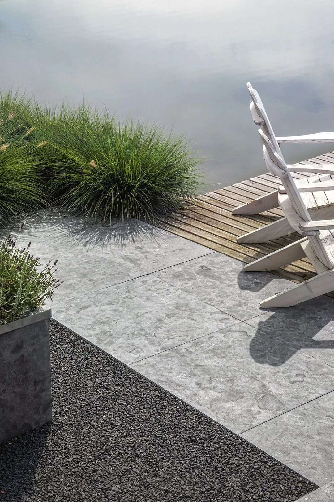 De Blue Moon tegels worden bewerkt met verschillende technieken zoals schuren, trommelen, zagen, borstelen en vlammen. Dit geeft iedere tegel een eigen karakter en zorgt voor een tijdloos uiterlijk dat perfect past in zowel moderne als klassieke tuinen.