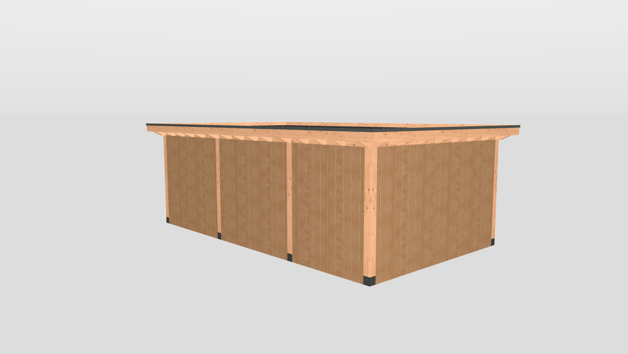 Rechts Wanden: Halfhouts rabat douglas enkelzijdige wand E, 371 x 224 cm, onbehandeld.
