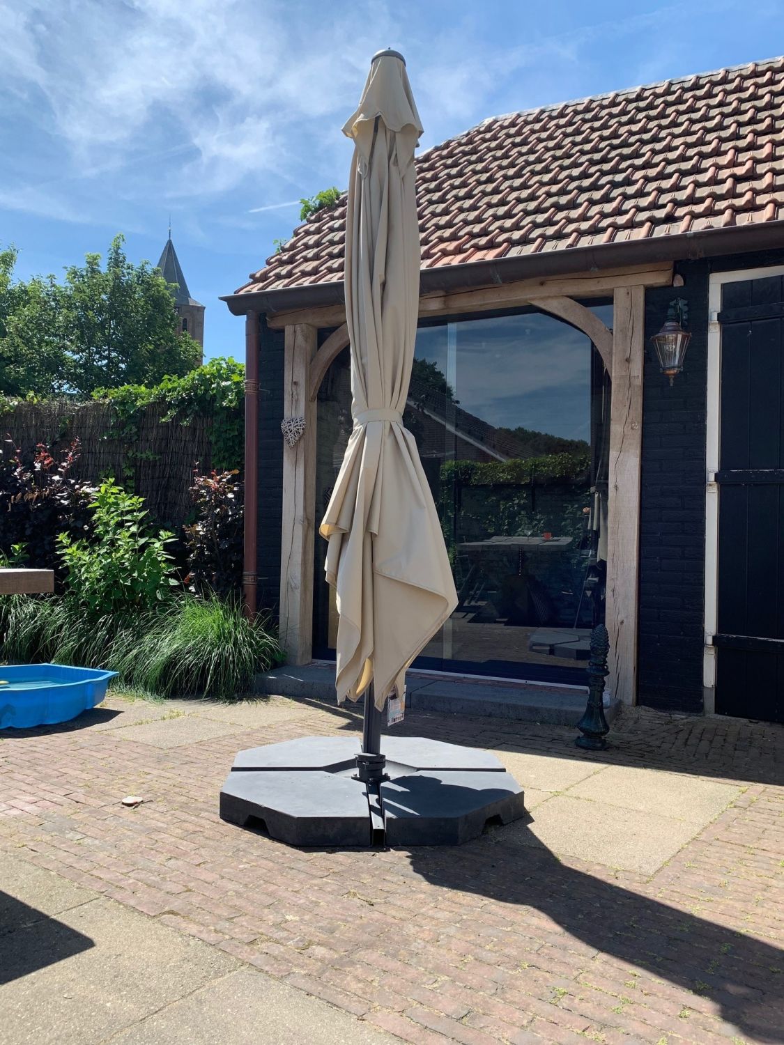 Parasol tegels zijn tegels die speciaal gemaakt zijn als gewicht om een parasol vast te zetten. De Parasol tegel is een driehoekvorm voor de perfecte aansluiting om de parasolvoet. Ze zijn verkrijgbaar in de maten 40x40x6 cm en 45x45x8 cm met een gewicht van 20 kilogram en 29 kilogram per stuk.