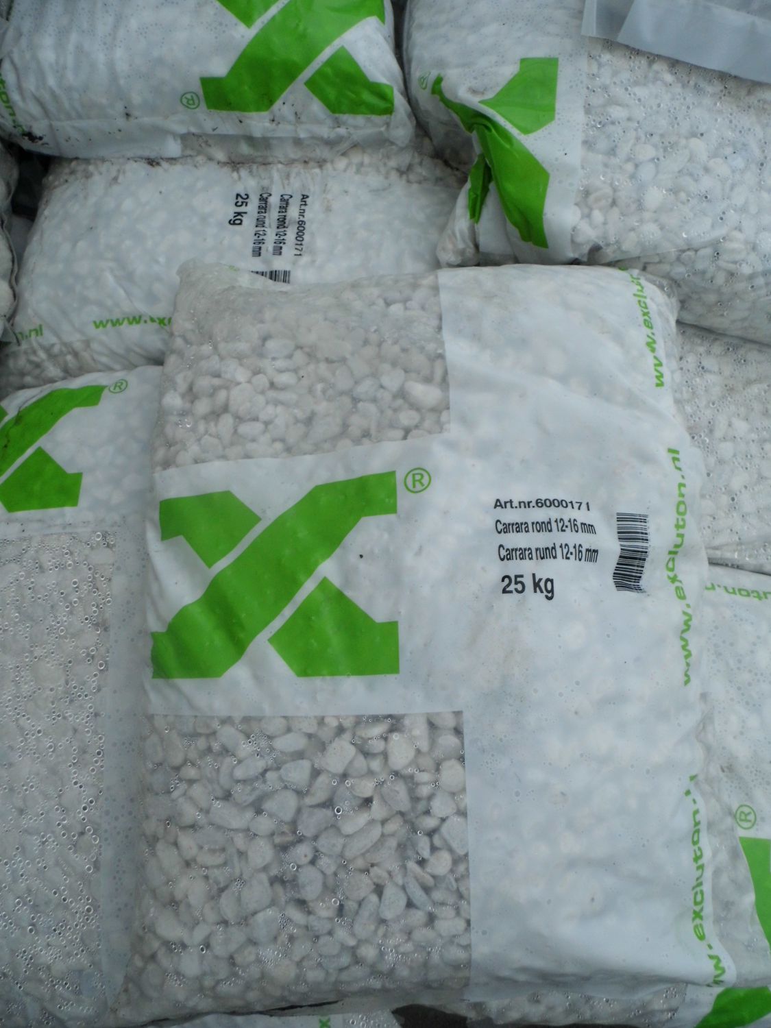 - De aanschafprijs van carrara rond is vanwege het dure trommelproces (rond maken van de steen) duurder dan andere soorten grind en split.
