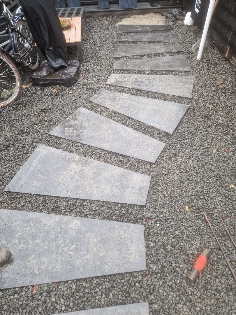 De tegels zijn geschikt voor terras en pad .