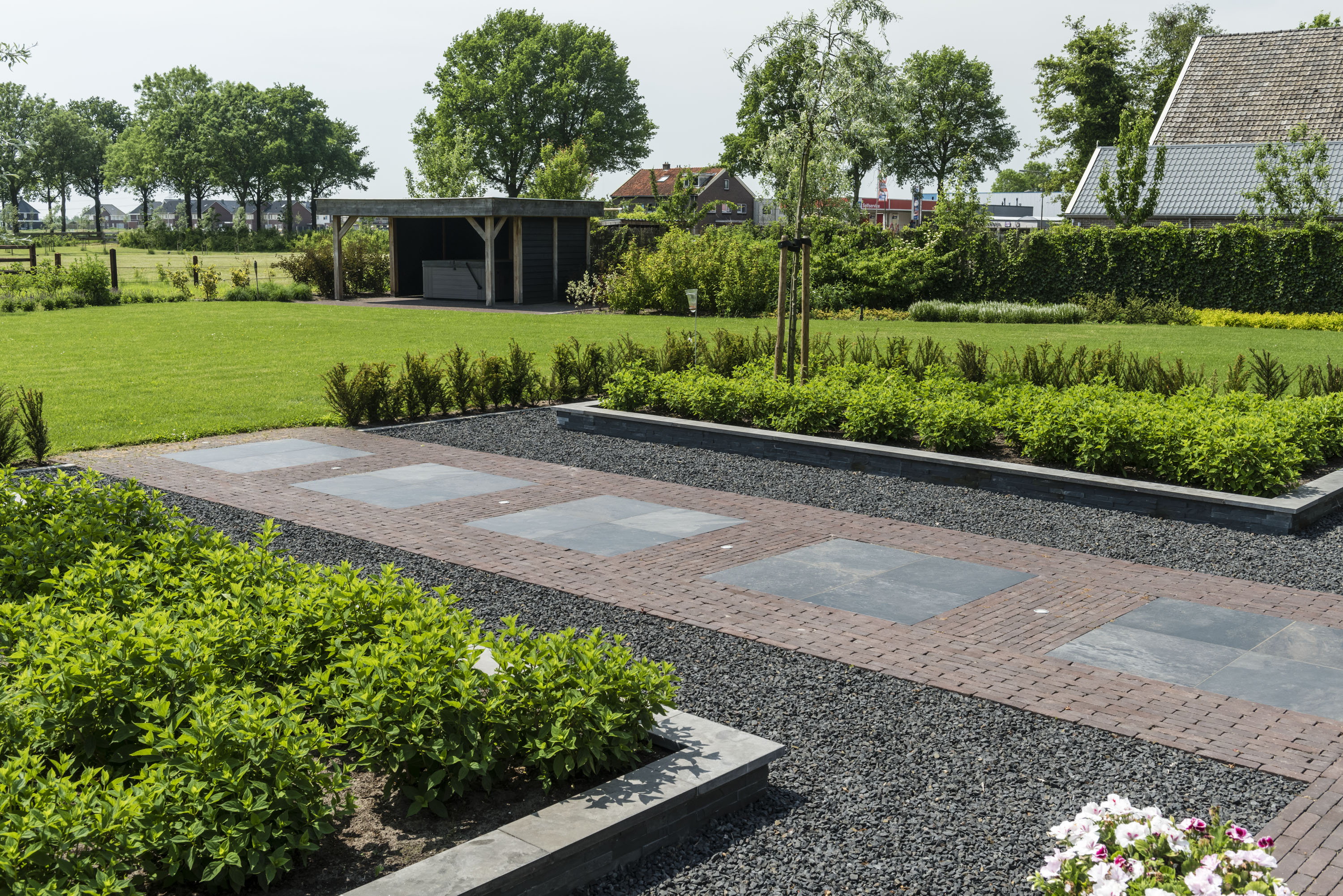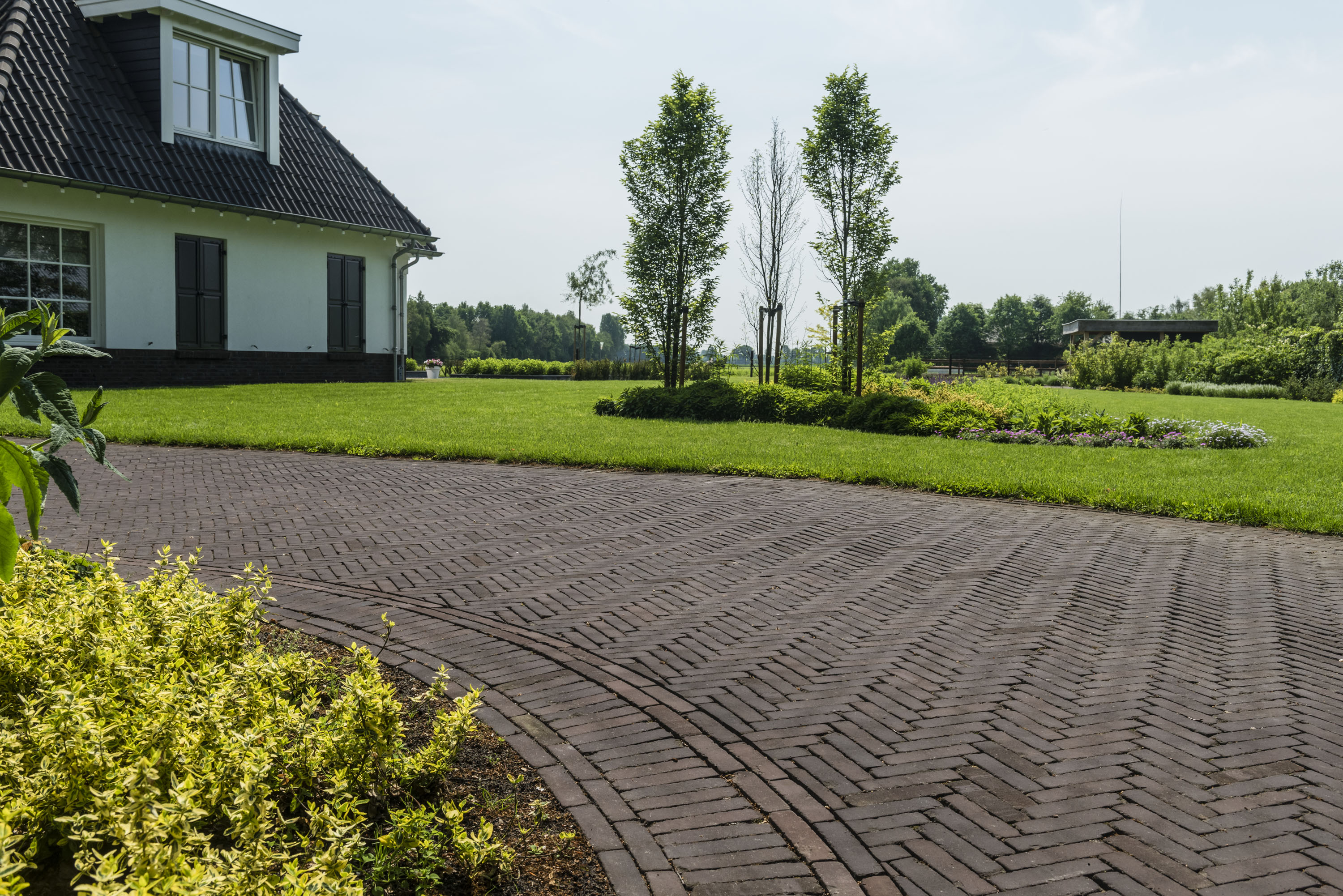 - De uitzonderlijke sterkte en hoge draagkracht van deze bestrating maken het mogelijk om hetzelfde materiaal zowel te gebruiken voor tuinterrassen als voor oprit