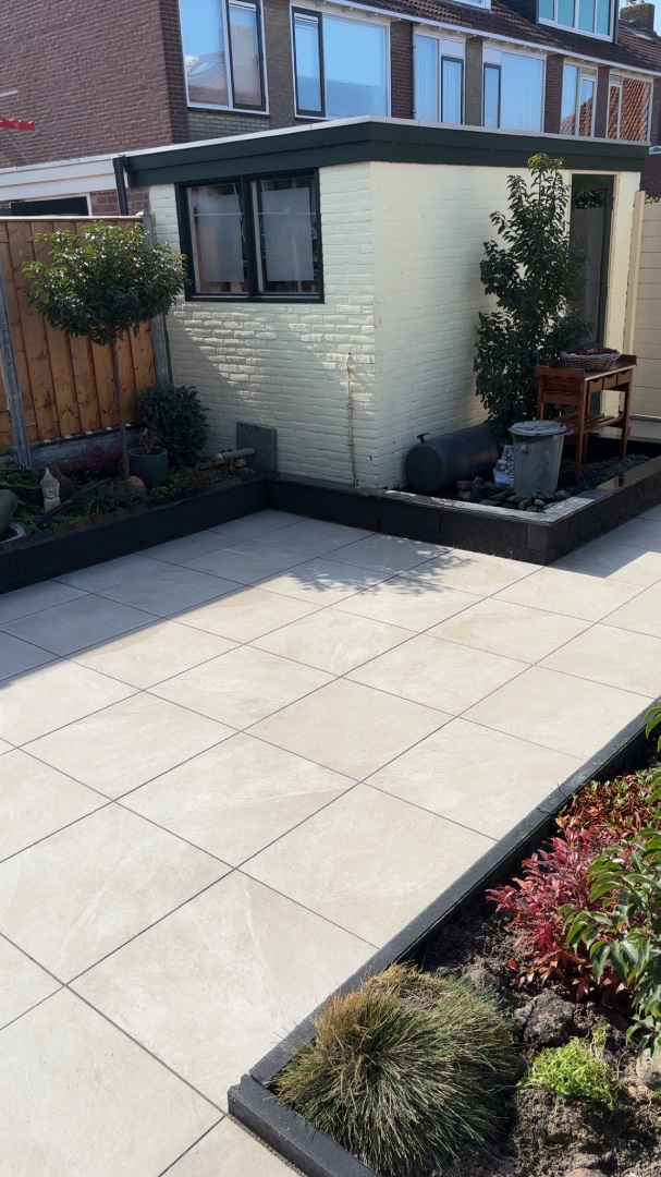 Met een formaat van 60×60 cm past deze tegel perfect op terrassen, patio’s en tuinpaden. De natuurlijke Slate Greige-kleur sluit naadloos aan bij zowel moderne als landelijke tuinstijlen.