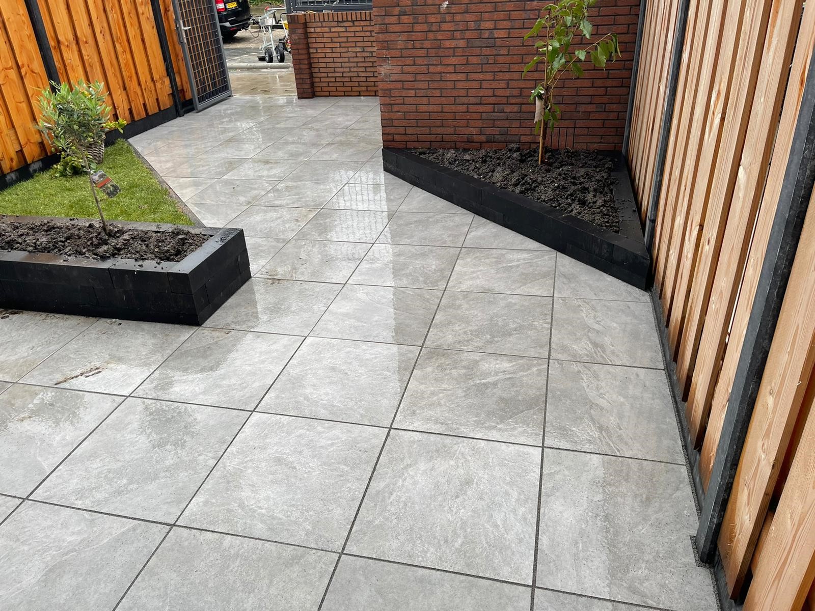 Onze Actietegel Keramiek op Beton in Slate Grey combineert de robuuste kracht van beton met de verfijnde uitstraling van keramiek. Ideaal voor stijlvolle en duurzame buitenruimtes.