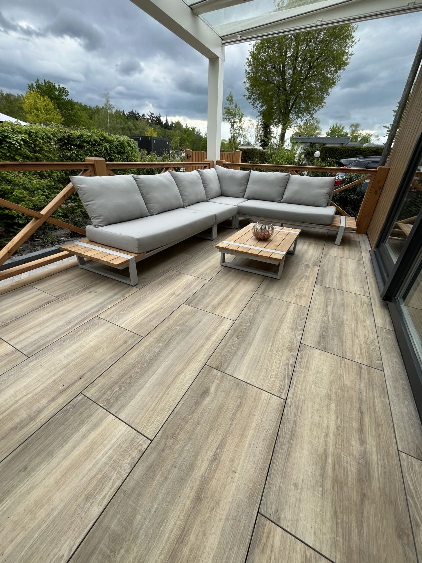 Bij Sierbestrating Jonk streven we ernaar om uw buitenleven te verrijken met hoogwaardige keramische tegels met houtlook. Ontdek de eindeloze mogelijkheden voor het transformeren van uw tuin en terras.