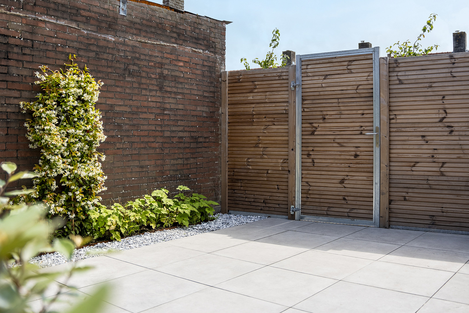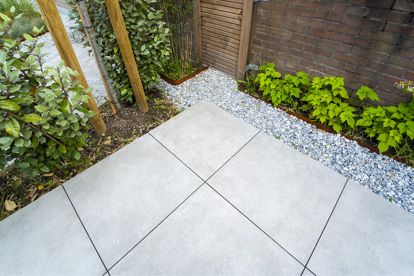 Combineer met warme houtsoorten, lichte natuursteen of groene beplanting voor een stijlvolle, evenwichtige buitenruimte.