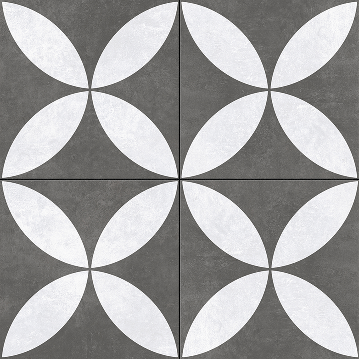 Het bloemmotief van de Flower Decor-serie komt in deze uitvoering krachtig tot uiting door het samenspel van helder wit en diep antraciet. Dit zorgt voor een luxe, grafische uitstraling met een moderne twist.