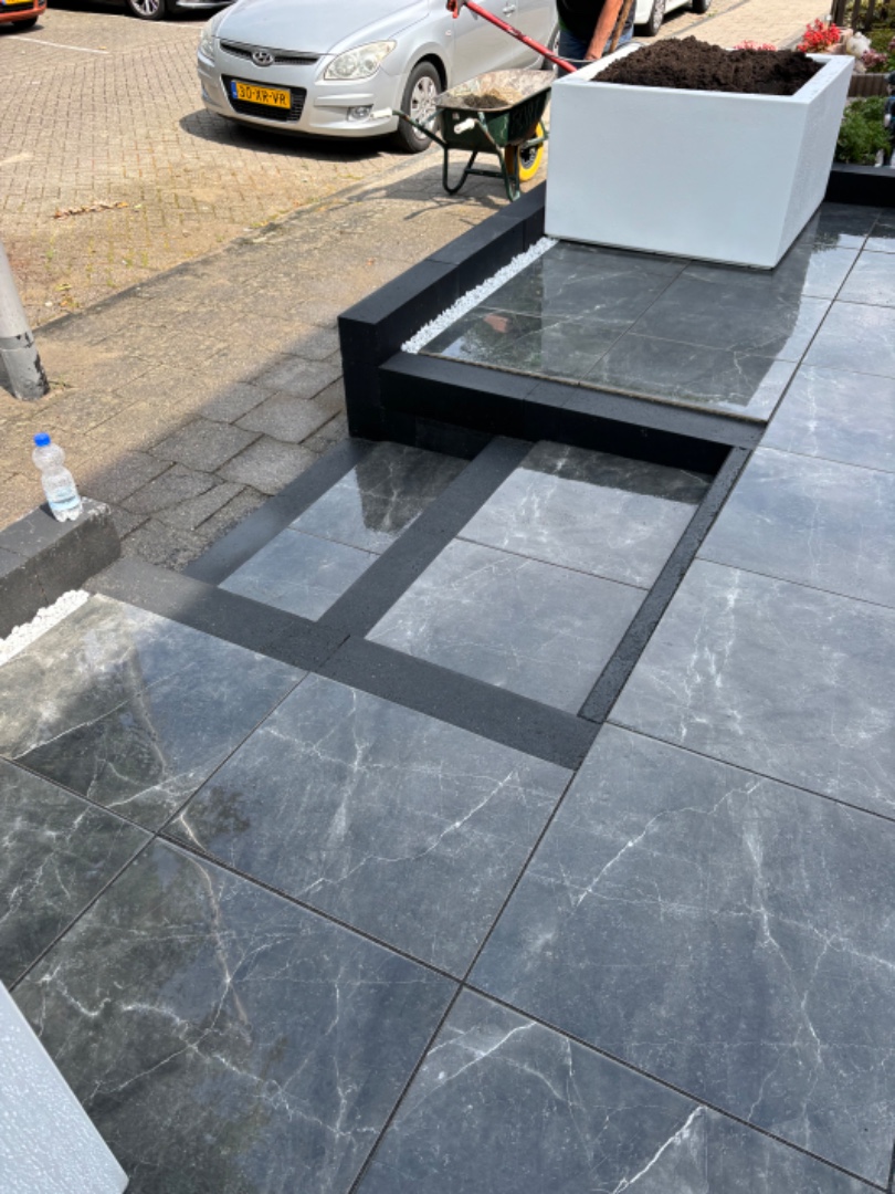 Verwerken op een stabiel zandbed en afwerken met voegmortel voor een strak eindresultaat.