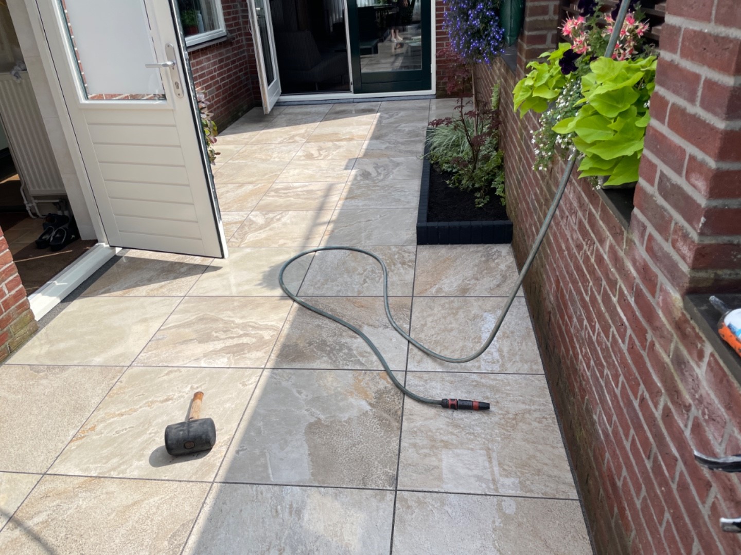 Leggen op een stabiel, geëgaliseerd zandbed en afwerken met voegmortel voor een strak resultaat.