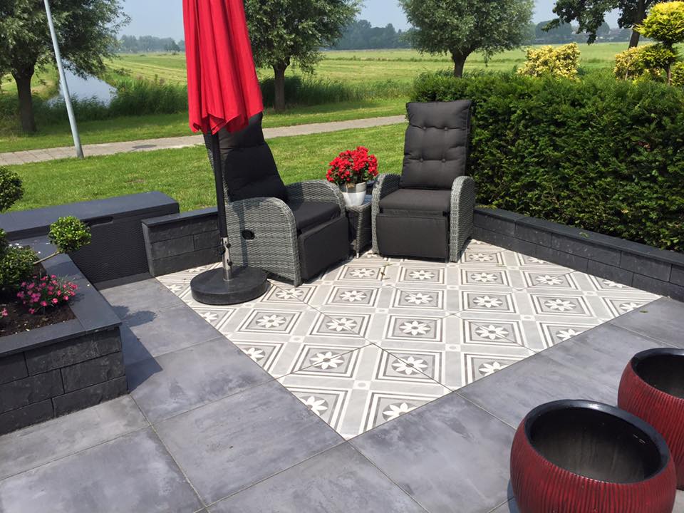 Deze tegel is uitermate geschikt voor terrassen, looppaden en patio’s. Door het verfijnde patroon voeg je eenvoudig een stijlvol accent toe aan je buitenruimte.