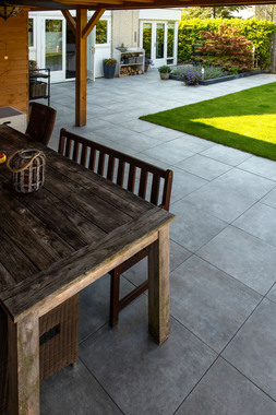 Combineer GeoCeramica Evoque Greige met natuurlijke materialen, hout of zachte contrasten voor een stijlvolle, harmonieuze buitenruimte die jarenlang mooi blijft.