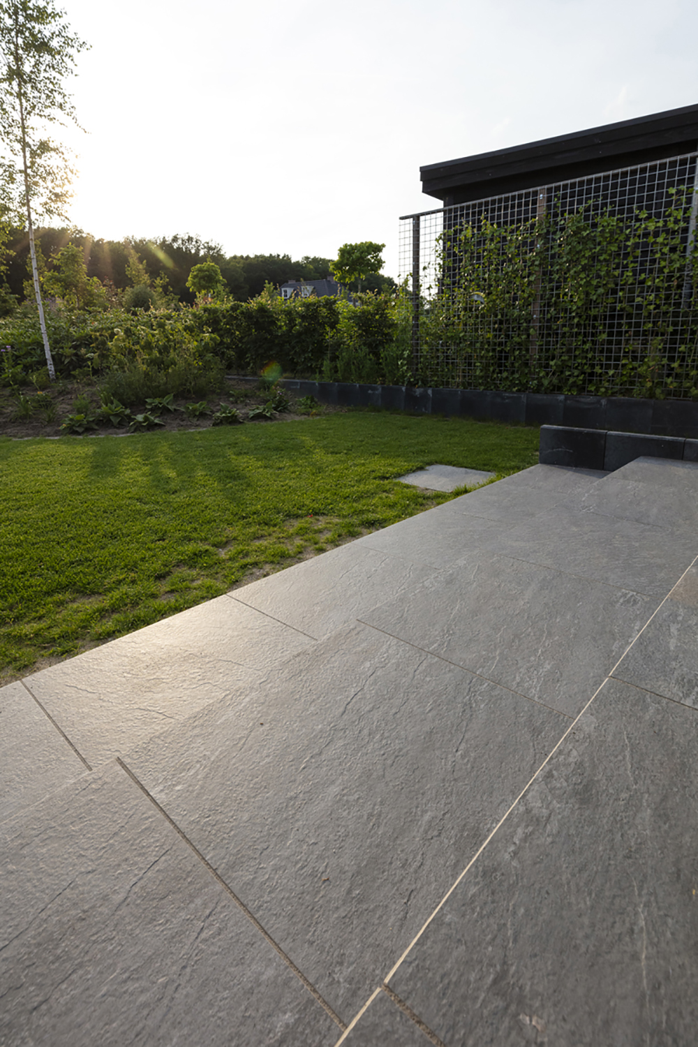 Ideaal voor terrassen, patio’s en balkons. De rustige, elegante tonen passen bij zowel moderne als klassieke buitenruimtes. Combineer met groenbeplanting of strak tuinmeubilair voor een stijlvol geheel.