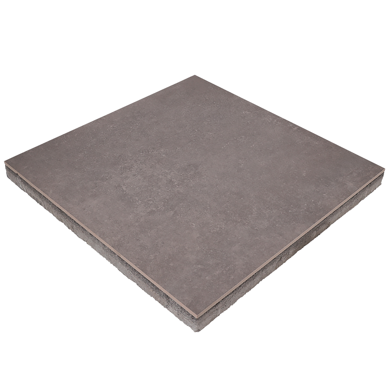 Deze tegel is ideaal voor terrassen, patio’s en stijlvolle buitenruimtes waar een neutrale, rustige sfeer gewenst is. Dankzij de integratie van gerecycled keramisch materiaal als onderlaag kan de tegel direct op een zandbed gelegd worden, zonder extra fundering.