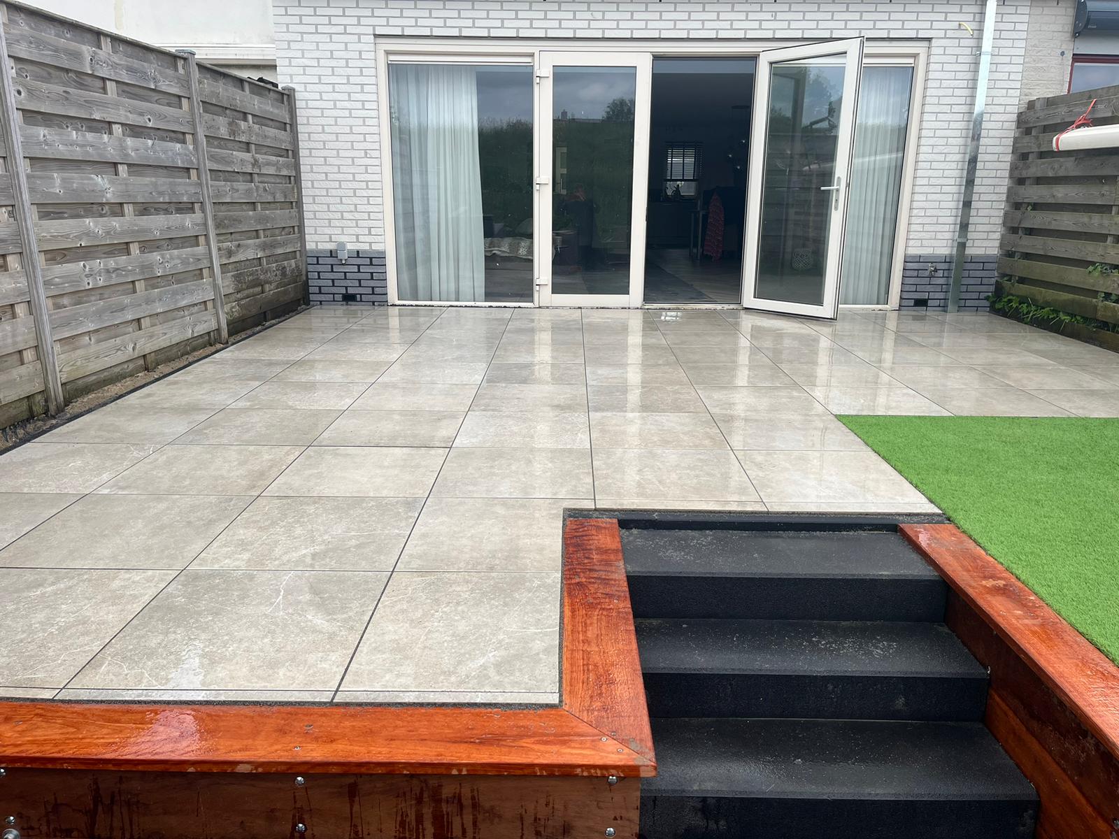 Met het formaat van 60 × 60 cm en een totale dikte van 4 cm is de tegel eenvoudig te verwerken en geschikt voor uiteenlopende buitenprojecten.