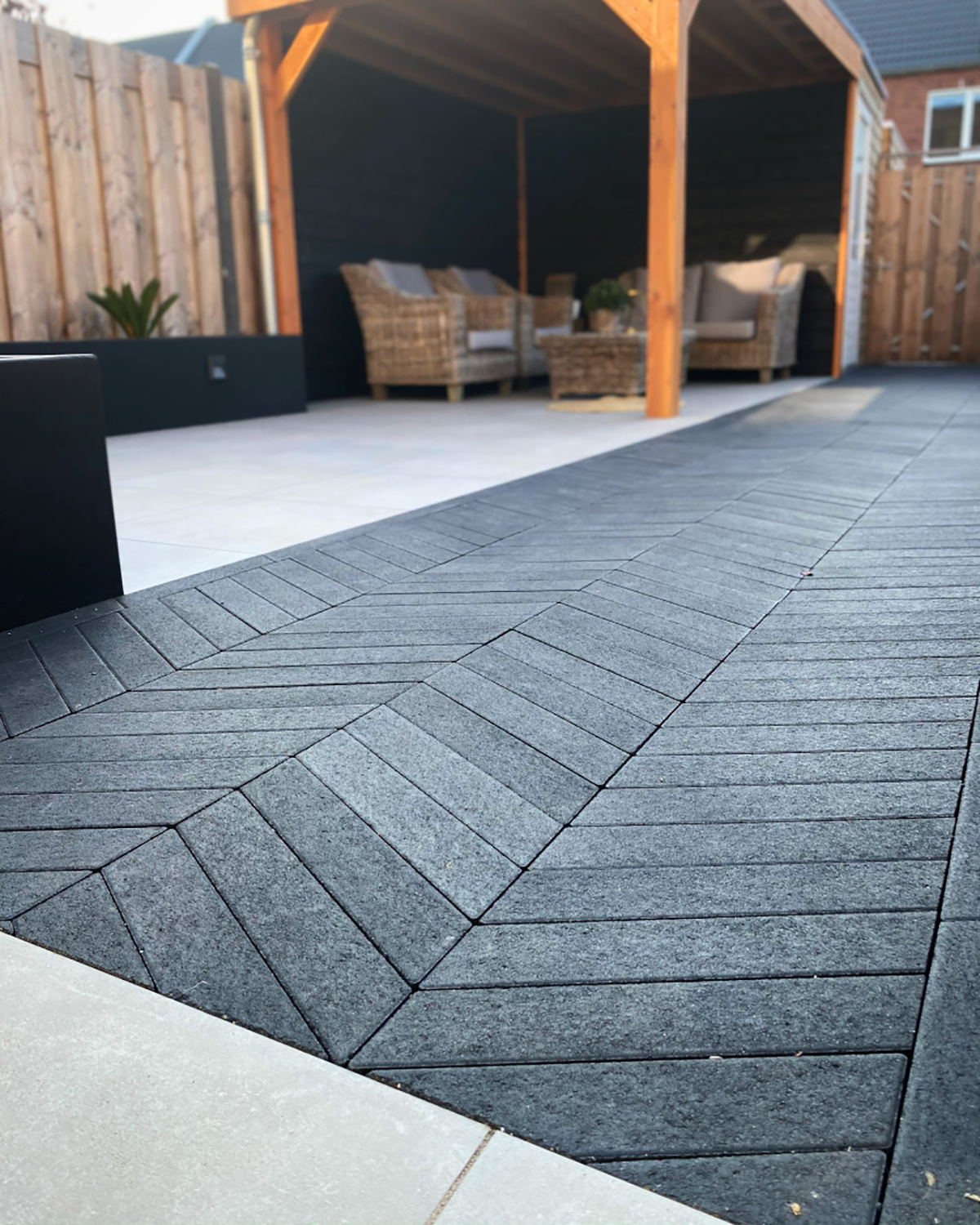 De stenen zijn bij uitstek geschikt voor verwerking in het populaire Hongaarse punt verband. Dit legpatroon, geïnspireerd op klassieke parketvloeren, zorgt voor een dynamisch en elegant lijnenspel dat iedere oprit, terras of tuinpad direct een chique uitstraling geeft.