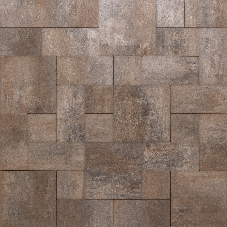 Het Groot Wildverband combineert verschillende formaten tegels tot één harmonieus geheel. Hierdoor ontstaat een ruimtelijk effect dat perfect past binnen zowel moderne als klassieke tuinontwerpen.