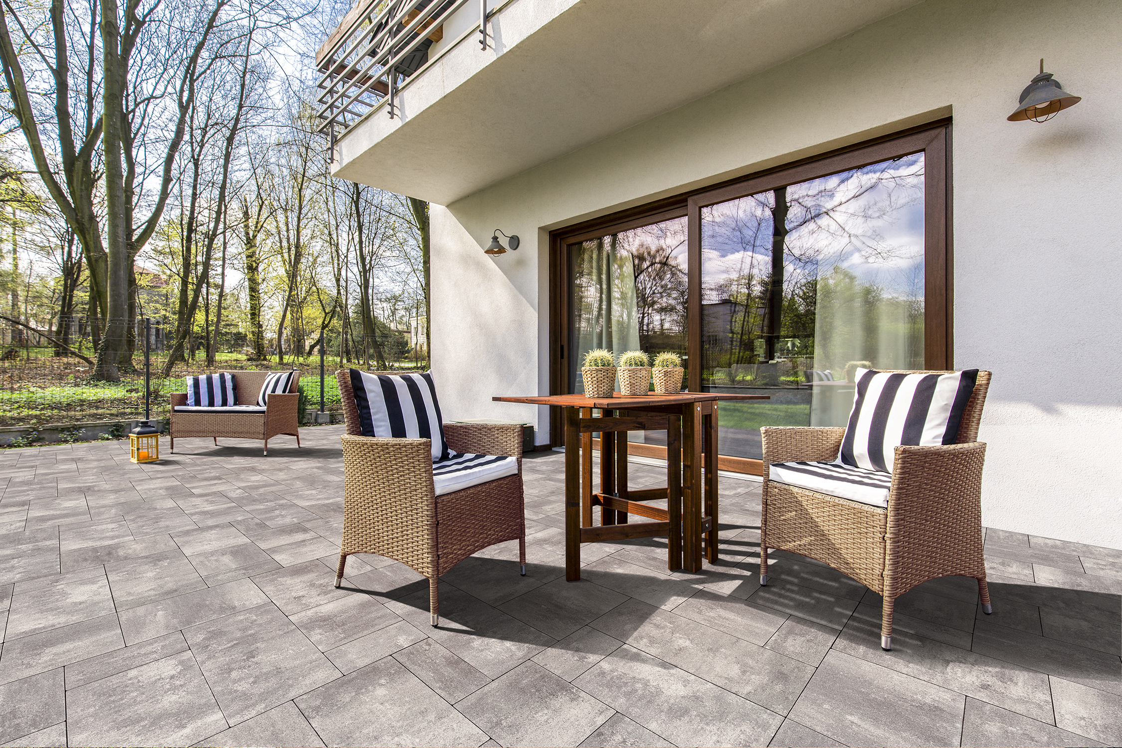 Door een dubbele toepassing van transparante, hoogwaardige impregnering worden terrastegels beschermt tegen vervuiling.