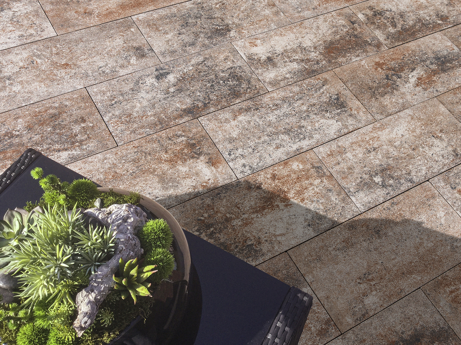 Door de roterende borsteling op het betonoppervlak onstaat er een satijnzacht oppervlak. En een leuke bijkomstigheid is dat de kleuren van de tegel versterkt worden. Ideaal voor betreding op blote voeten!
