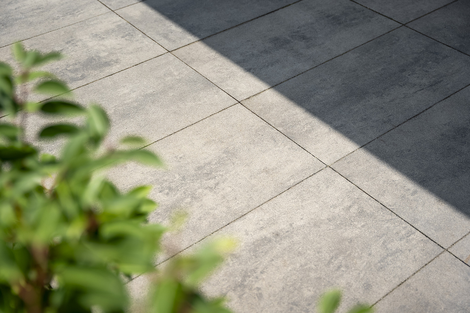 Door de roterende borsteling op het betonoppervlak onstaat er een satijnzacht oppervlak. En een leuke bijkomstigheid is dat de kleuren van de tegel versterkt worden. Ideaal voor betreding op blote voeten!