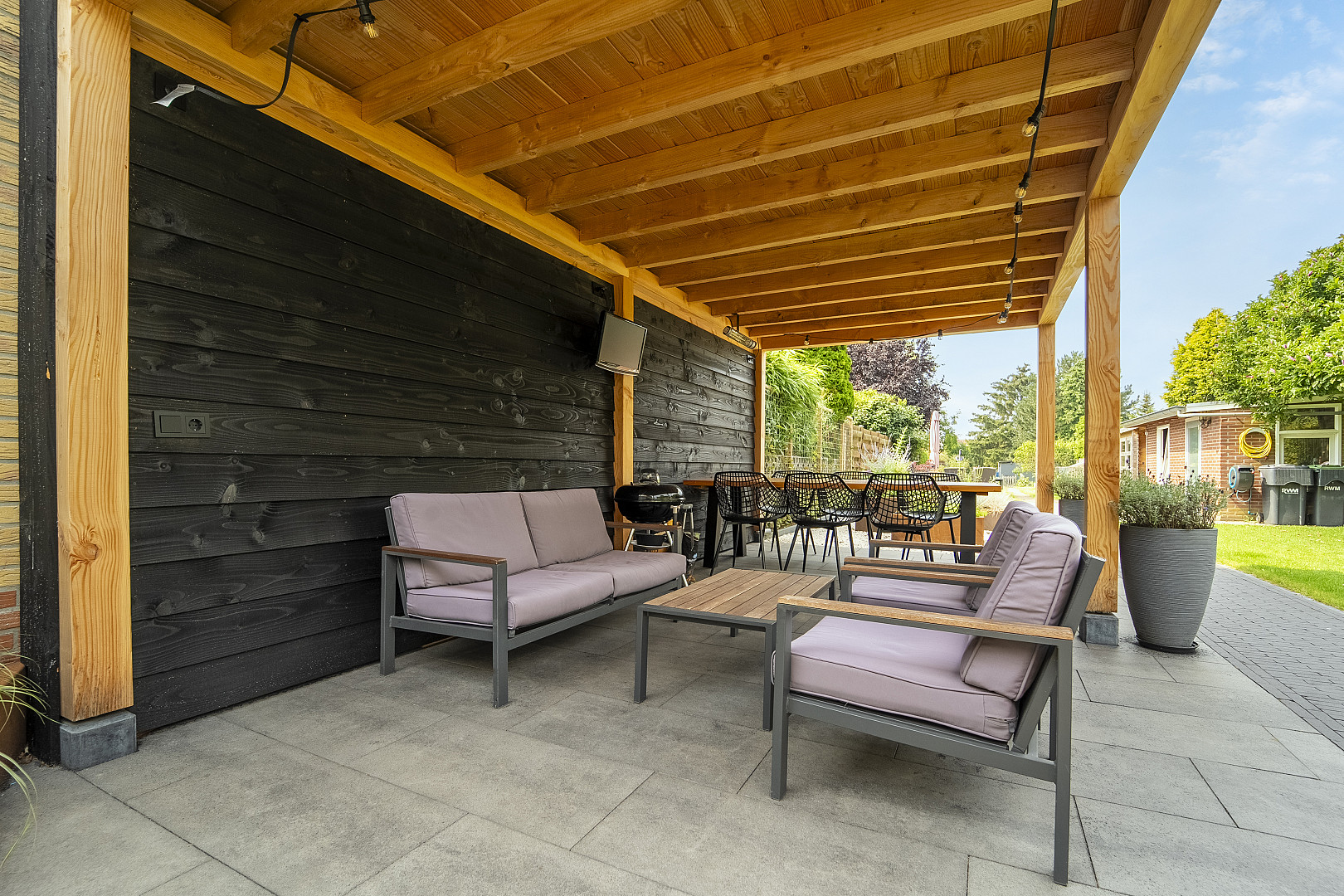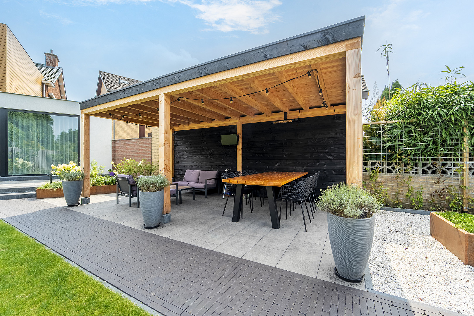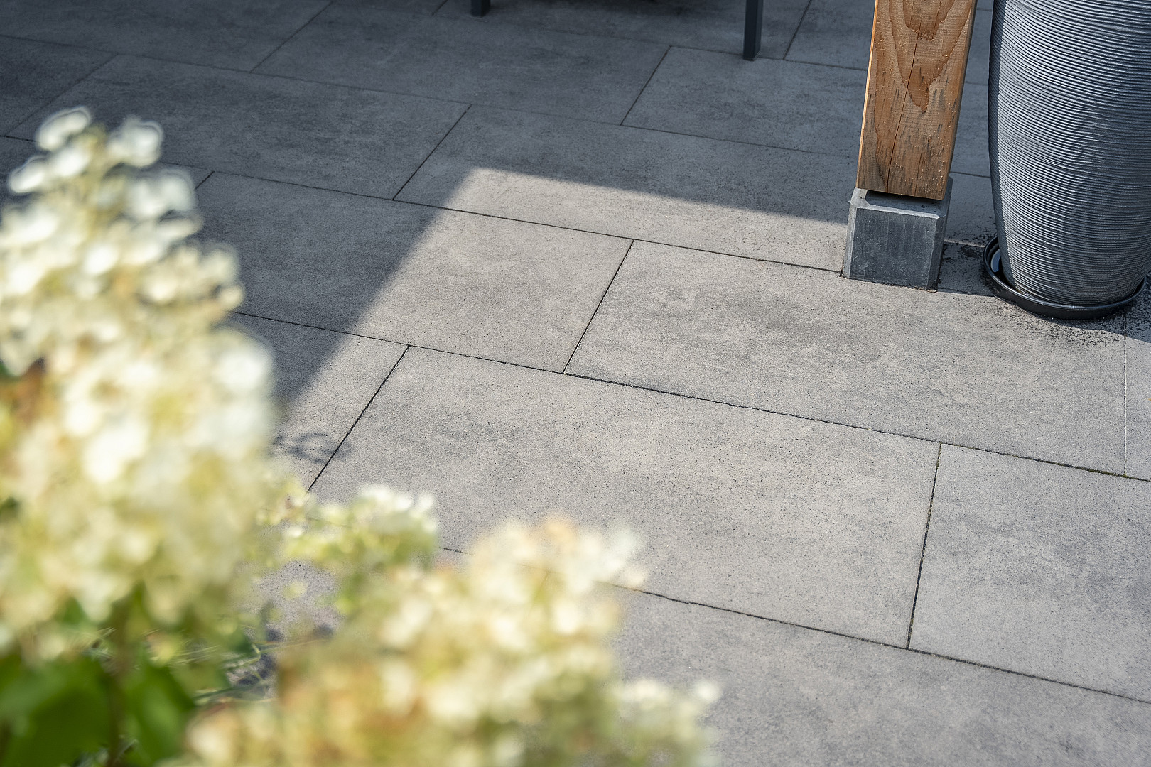 Door een dubbele toepassing van transparante, hoogwaardige impregnering worden terrastegels beschermt tegen vervuiling.
