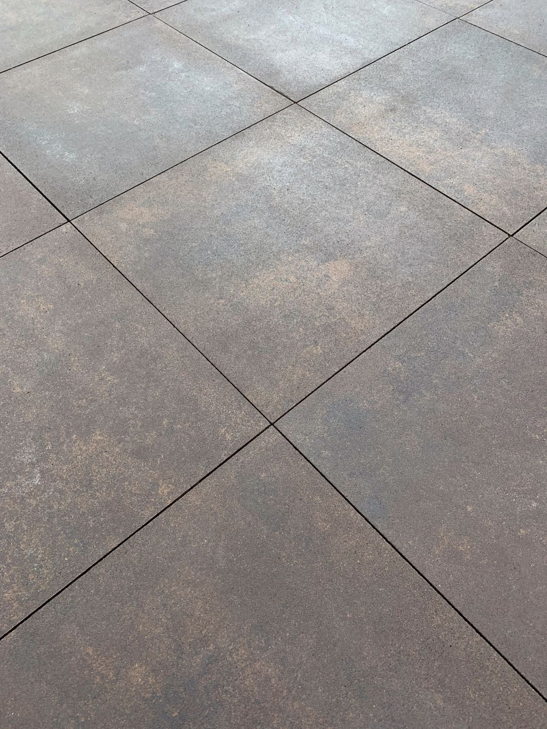 Door de roterende borsteling op het betonoppervlak onstaat er een satijnzacht oppervlak. En een leuke bijkomstigheid is dat de kleuren van de tegel versterkt worden. Ideaal voor betreding op blote voeten!
