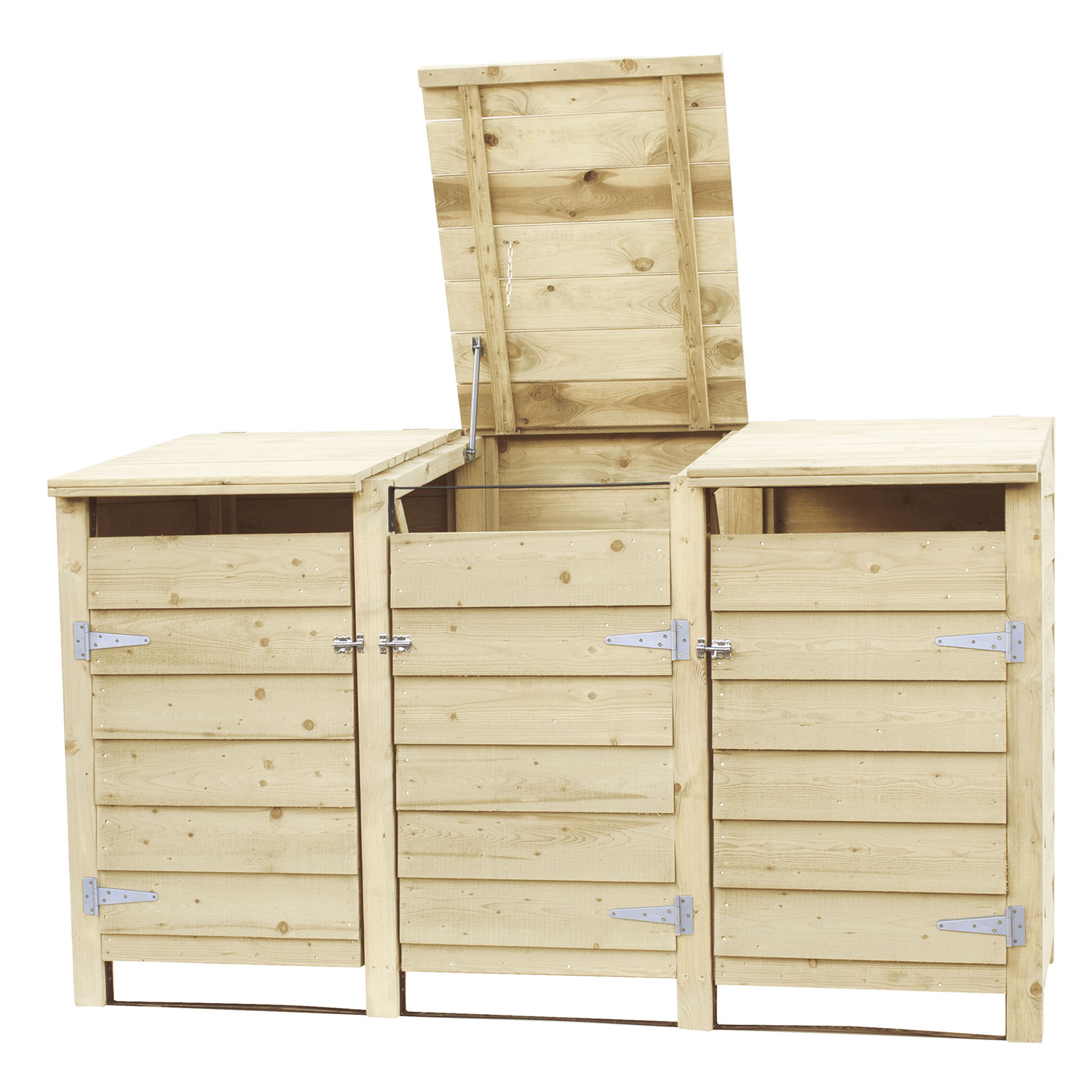 Deze stevige Noord-Europees vuren containerkast wordt geleverd met prefab wanden met Zweeds rabat profiel. Inclusief achterwand, beslag, springveer om de klep open te houden en kettinkje om de containerklep aan te hangen.