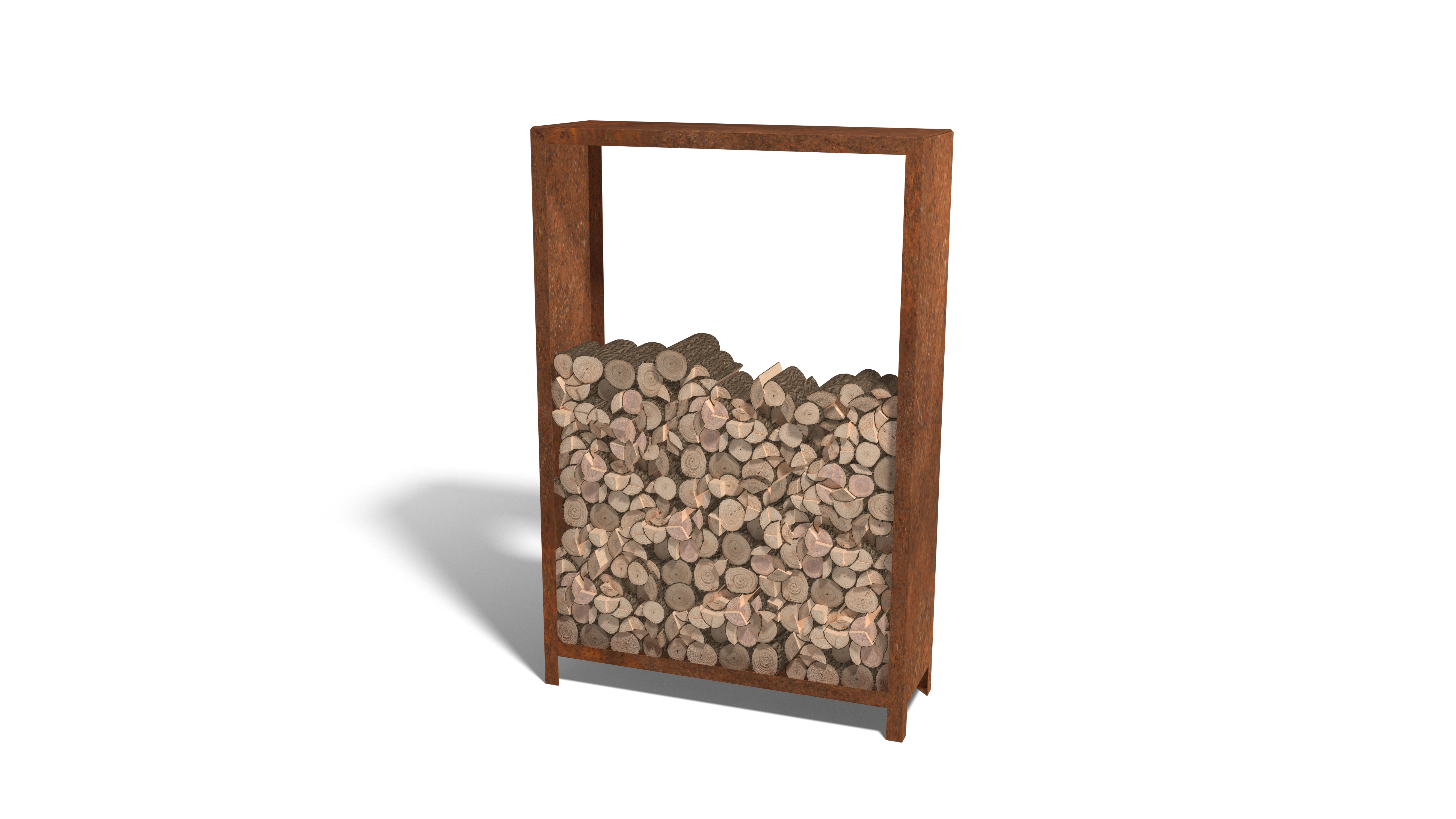 Deze houtopslag wordt vervaardigd uit hoogwaardig Corten-A staalplaat. Deze metaalsoort heeft als unieke eigenschap dat het een zeer dichte oxidehuid (roestlaag) vormt. Doorroesten is hierdoor onmogelijk. Door de dichte oxidehuid wordt het dieperliggende materiaal afgeschermd van zuurstof. Hierdoor wordt de oxidatie sterk vertraagd terwijl de corrosie zich wel voortzet. De cortenstalen houtopslag wordt ongeroest, in de grijze metaalkleur geleverd. De bruin/oranje roestlaag vormt zich binnen enkele weken tot maanden. Hier is geen behandeling voor nodig. Tijdens het roestproces kan de houtopslag afgeven. Cortenstaal is een metaallegering die bestaat uit ijzer en hieraan zijn koper, fosfor, silicium, nikkel en chroom toegevoegd.