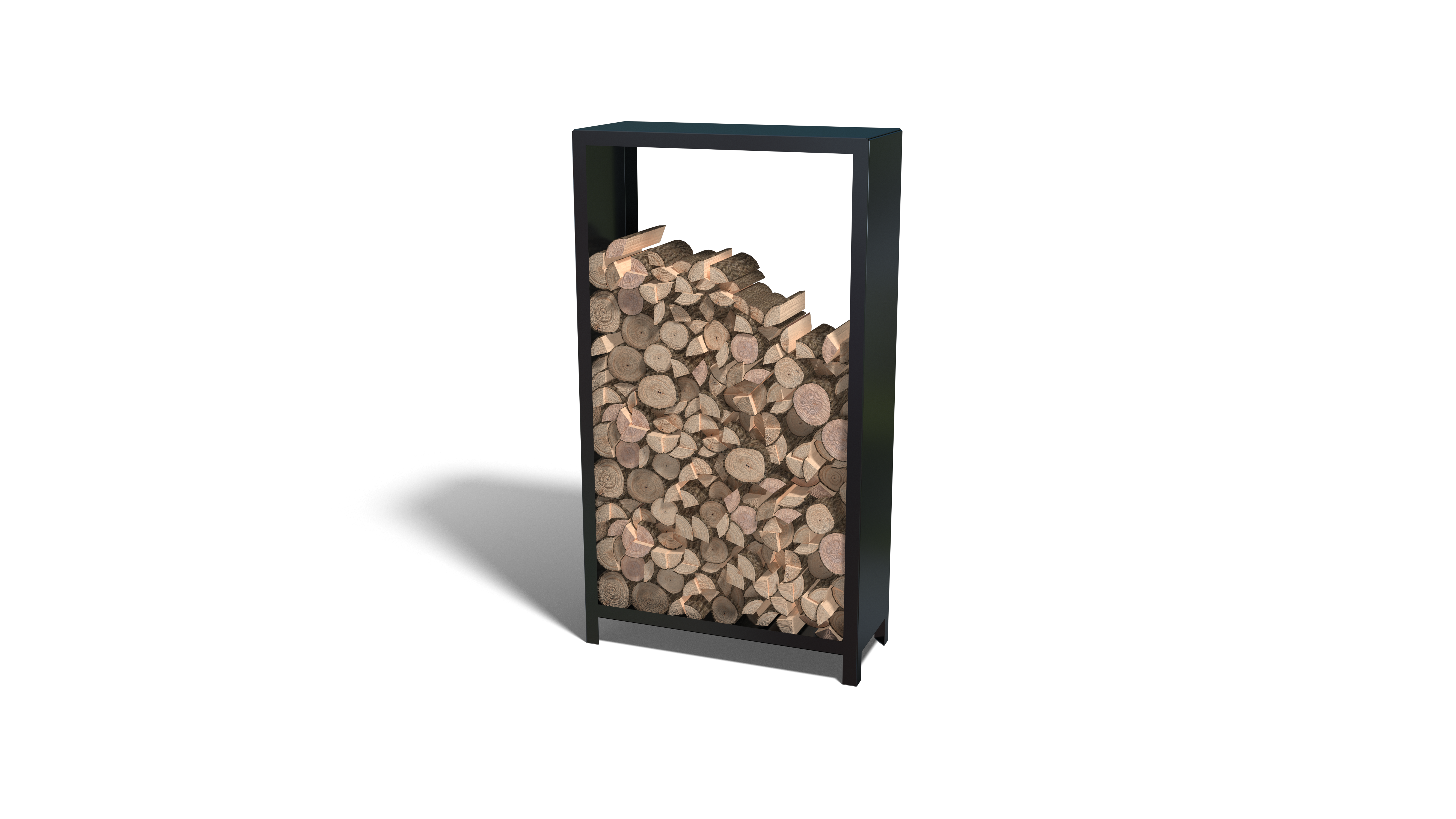 De houtopslag is een modulaire stalen houtopslag die als bouwpakket geleverd wordt. De houtopslag wordt opgebouwd uit losse panelen. Hij is geheel blind te koppelen, er zitten geen bevestigingen in het zicht.