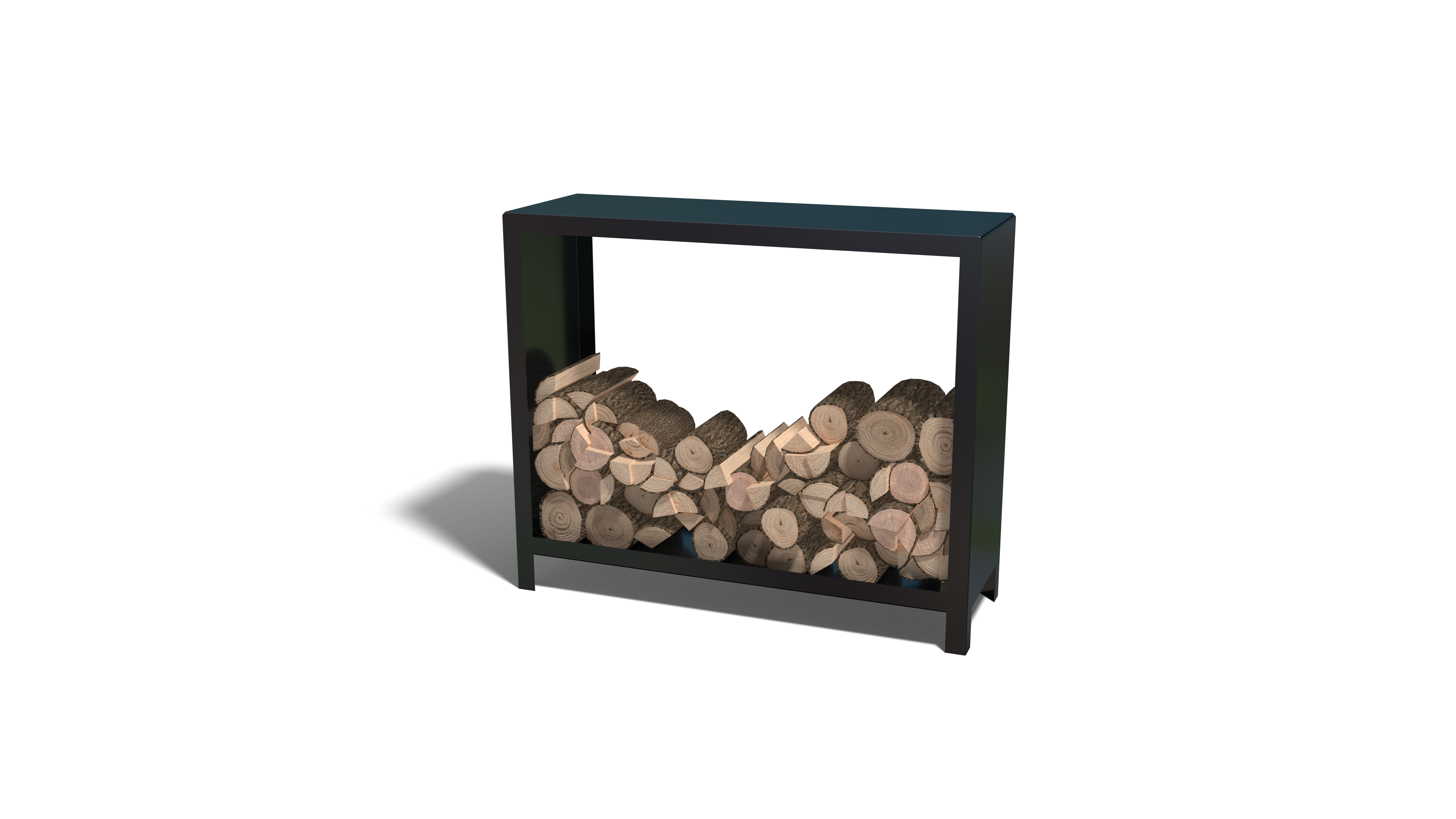 De houtopslag is een modulaire stalen houtopslag die als bouwpakket geleverd wordt. De houtopslag wordt opgebouwd uit losse panelen. Hij is geheel blind te koppelen, er zitten geen bevestigingen in het zicht.