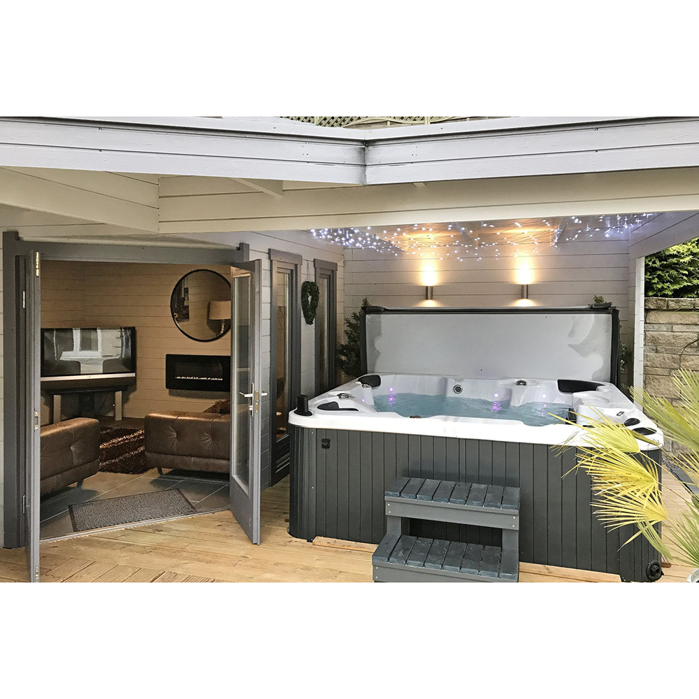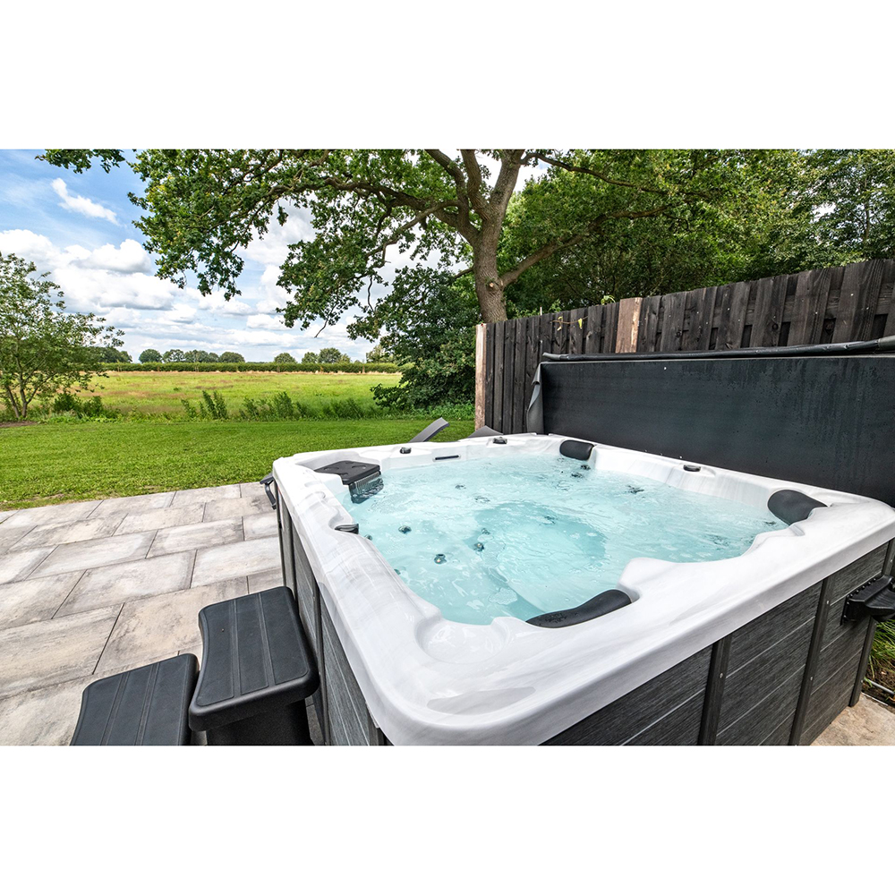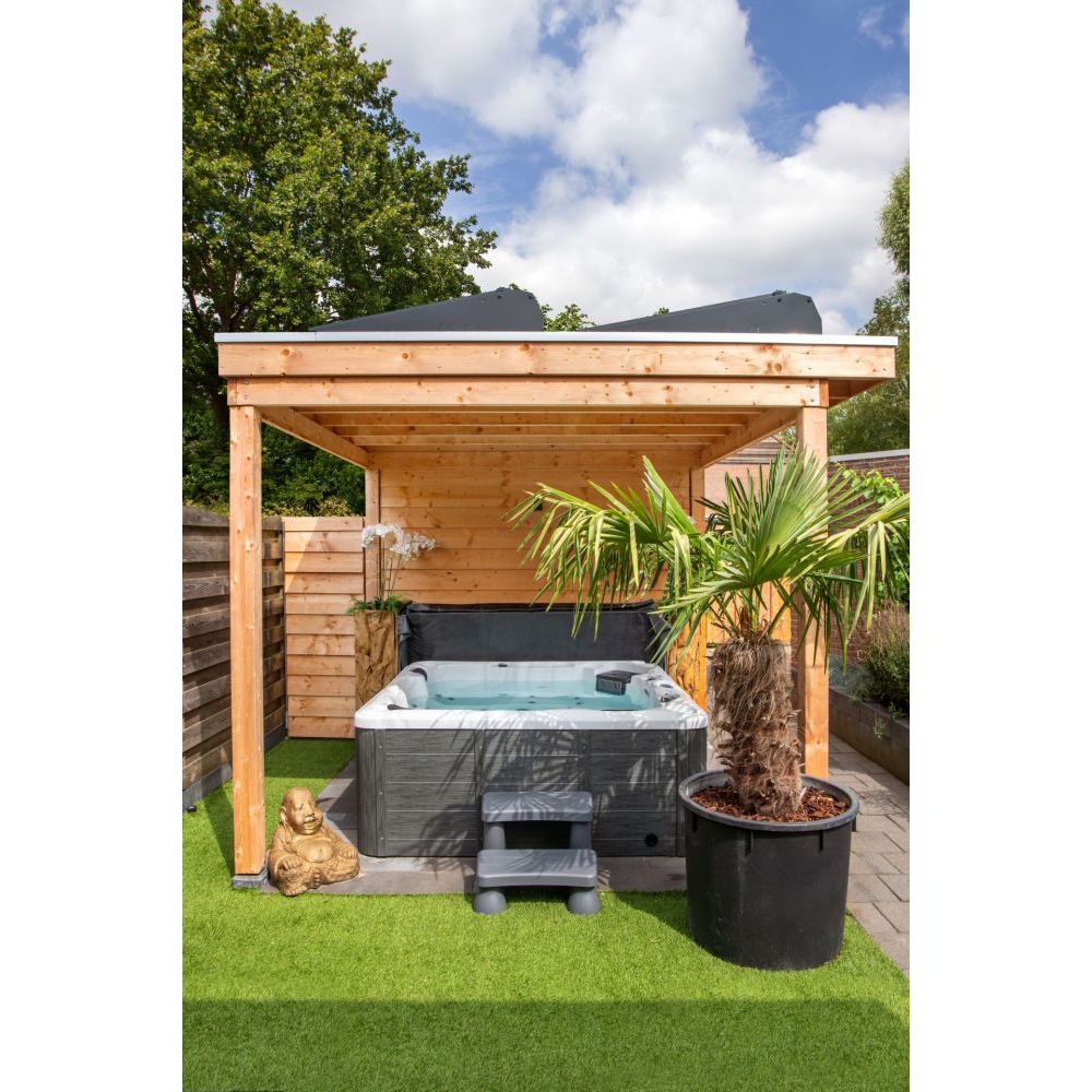- Isolatie: 3 cm. HD foam, isolatiegordijn rondom de spa, geïsoleerde kuip