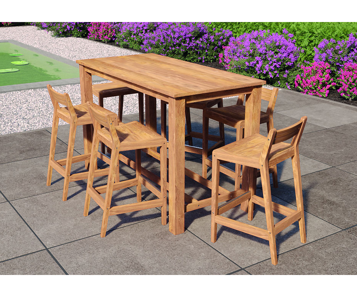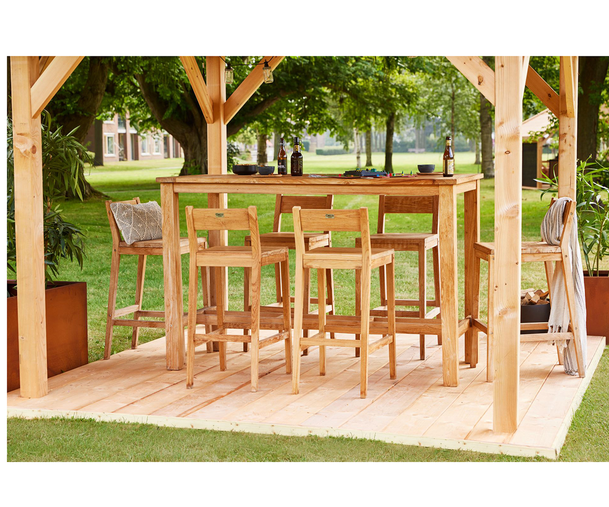 Barset Buckingham tafel en zes barstoelen zithoogte 75 cm teak